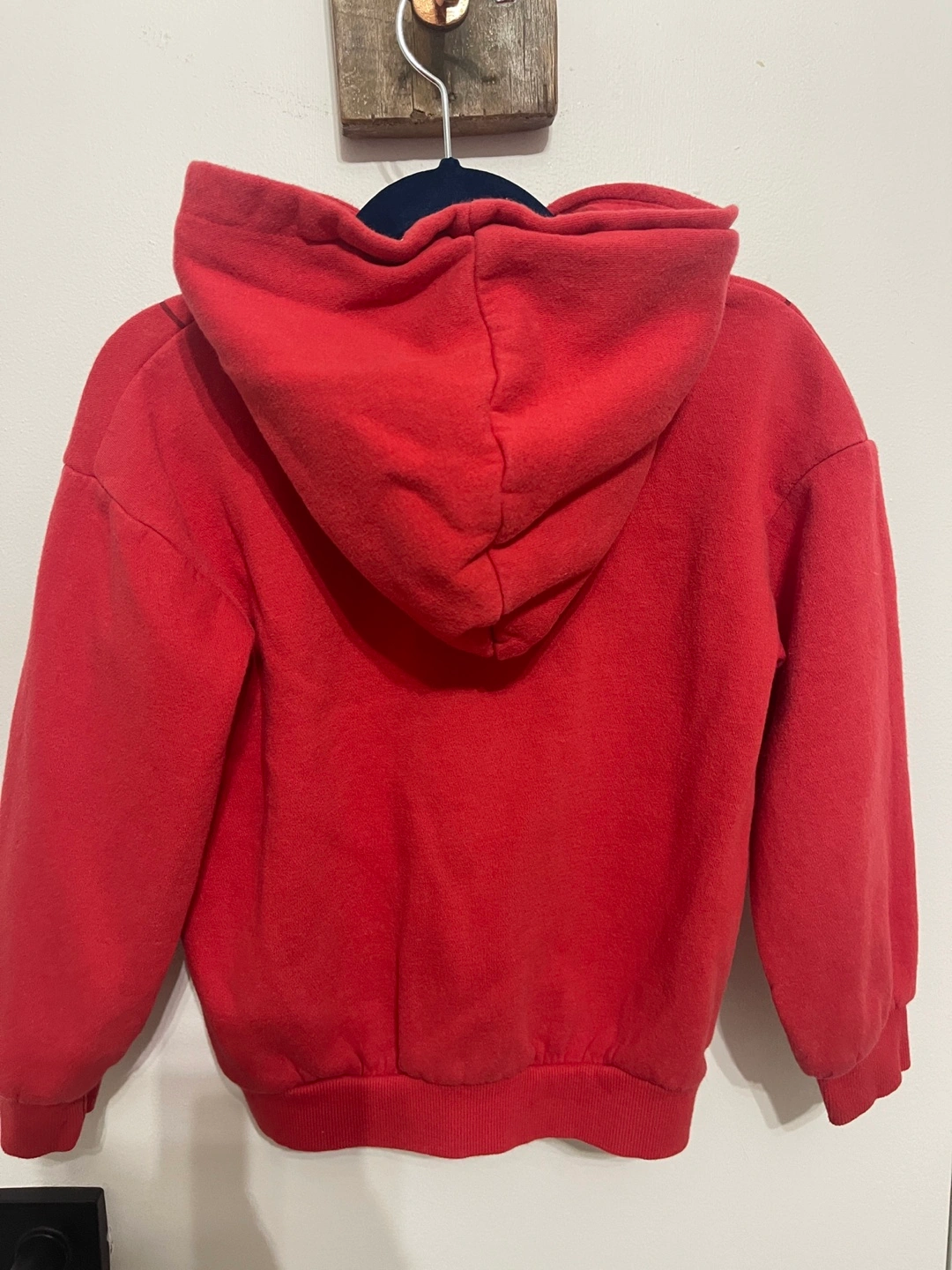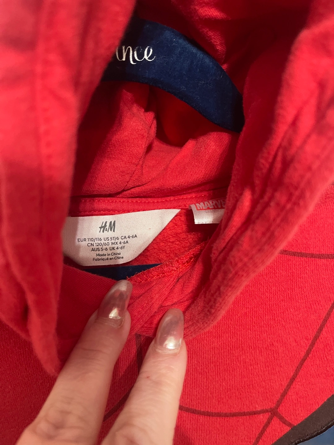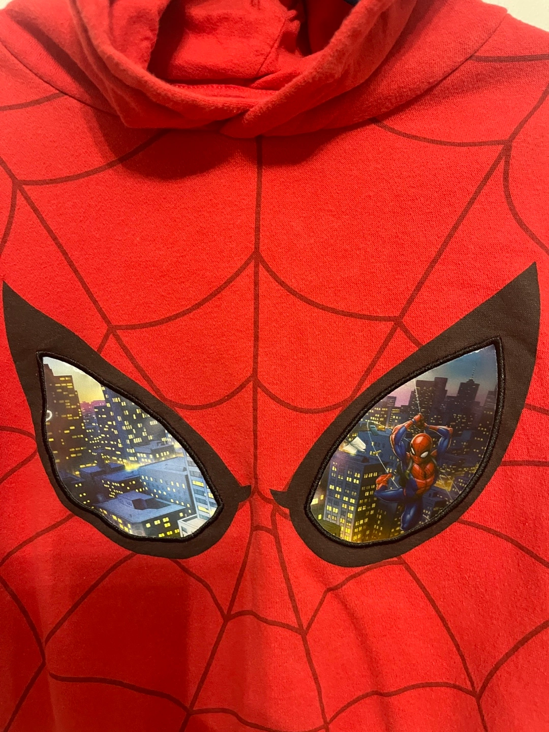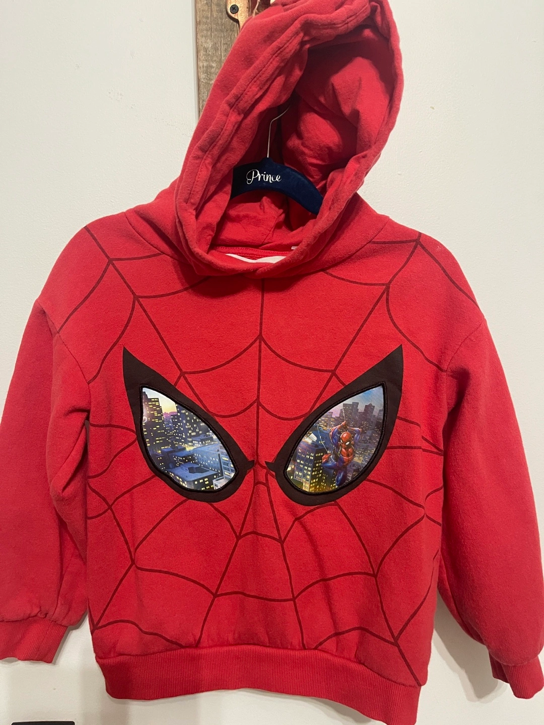 78Red Spiderman hoodie. Features Spiderman holographic eyes on the front. Size 4-6 years. Good condition. Thickson and Dundas Whitby