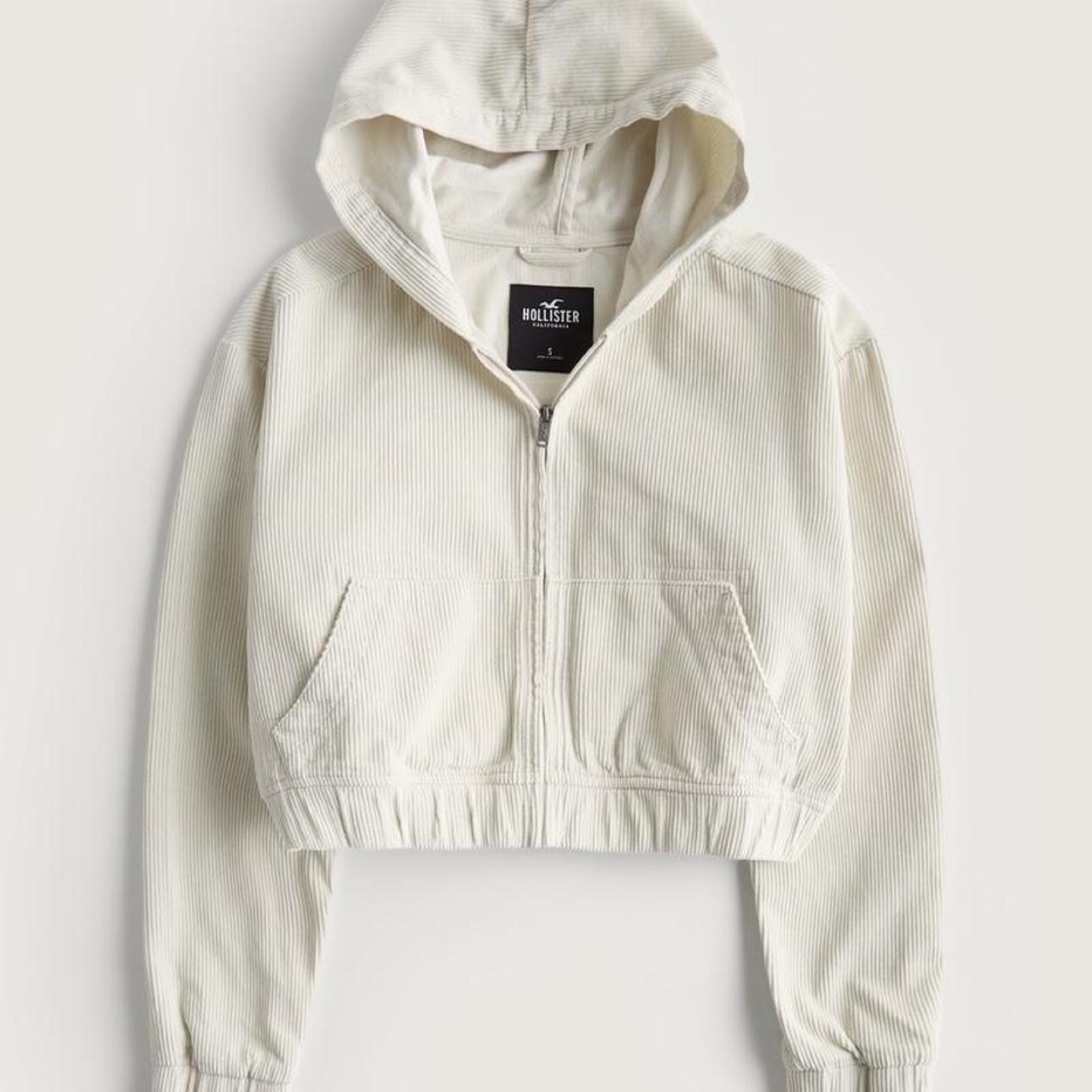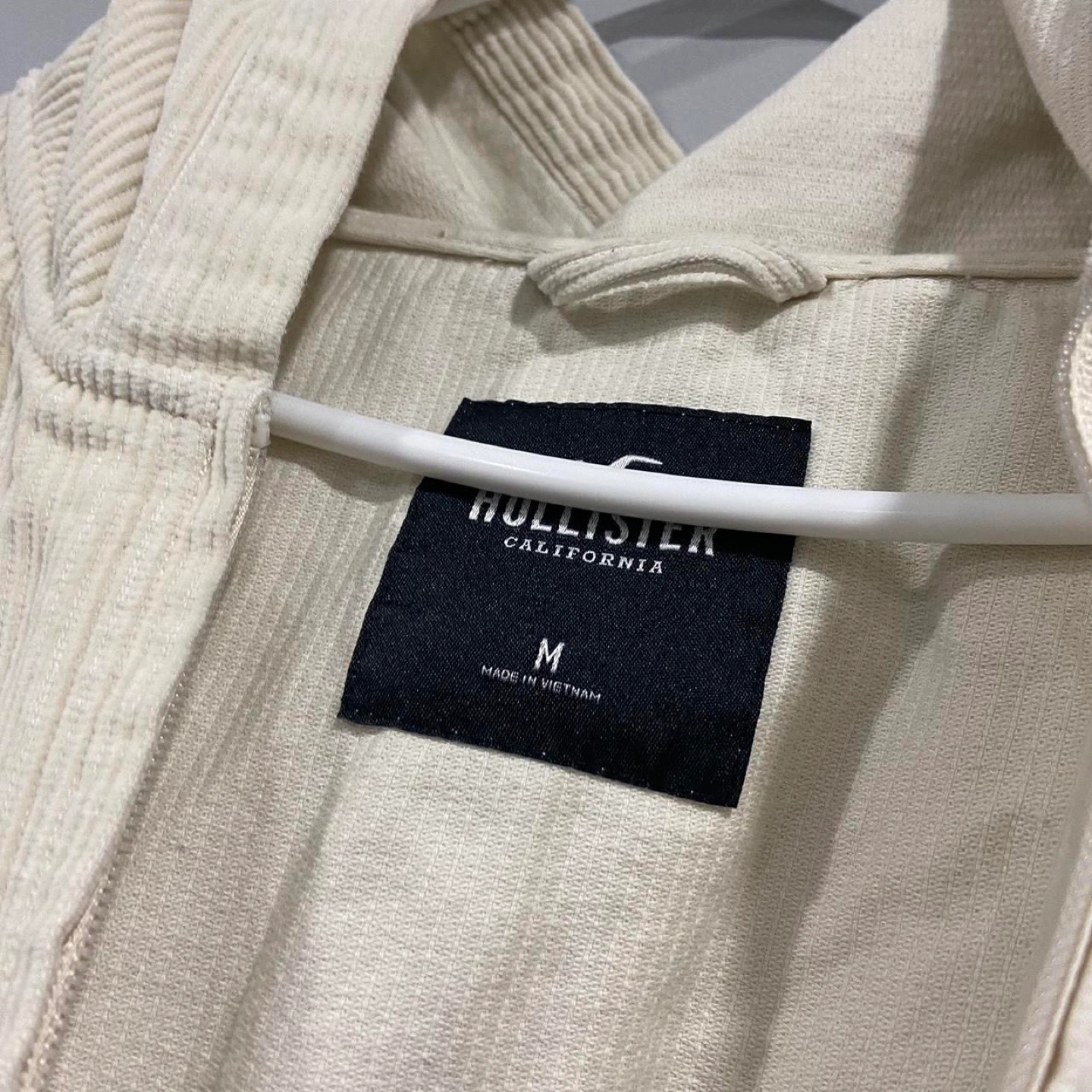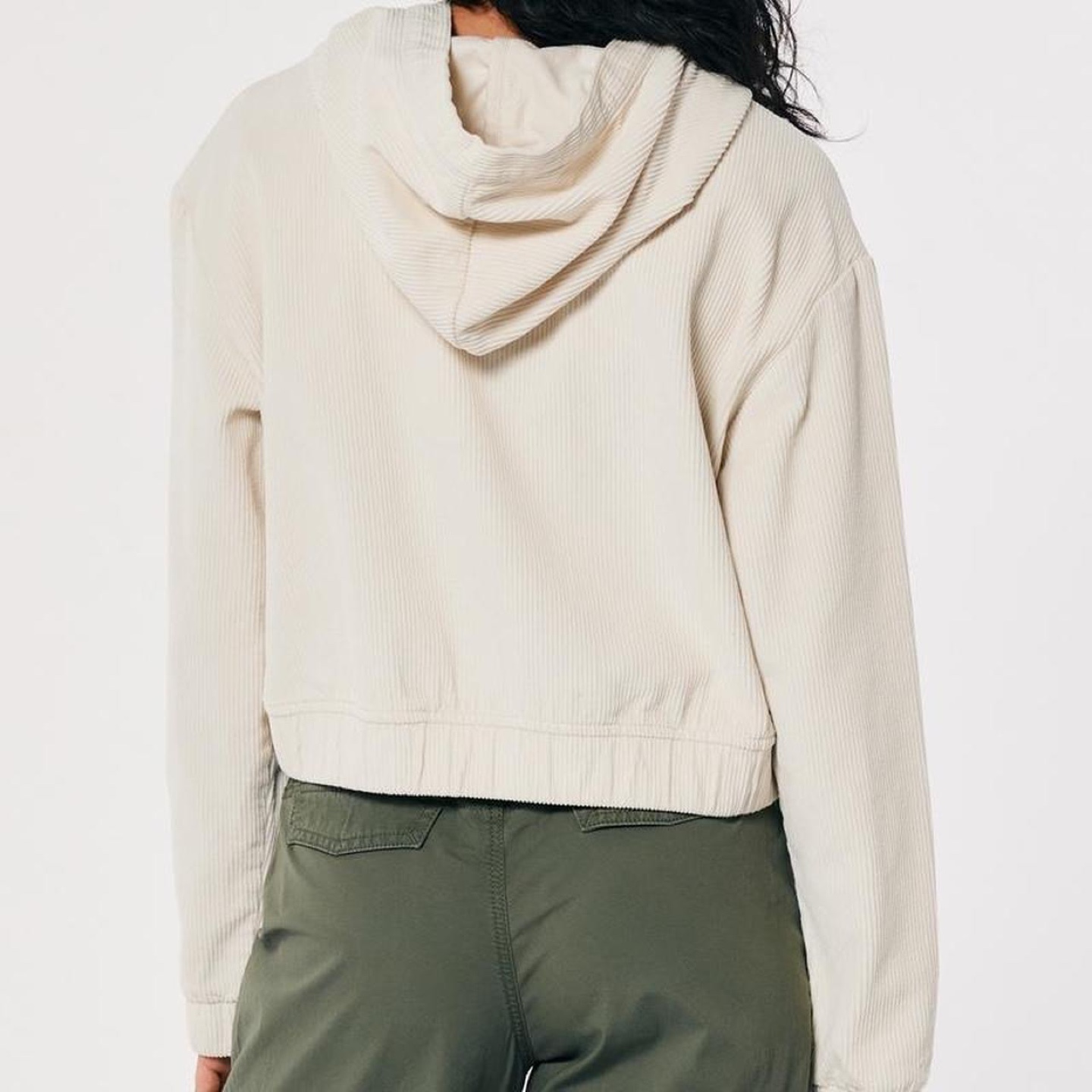 Bomber style zip up. light corduroy jacket/sweater in a size medium from Hollister. Loose fit and only worn twice. Super cute in a light cream color. Retails for $79 after tax. Sold out on site!