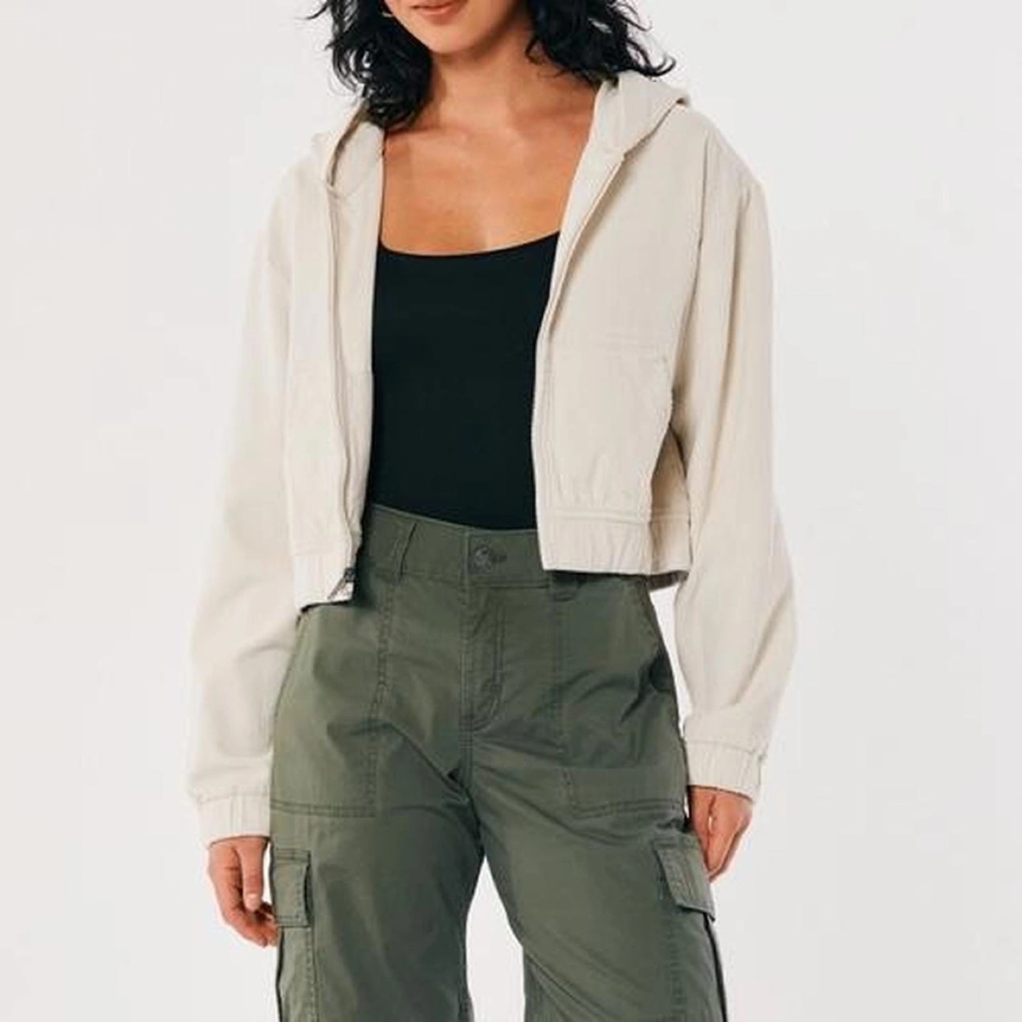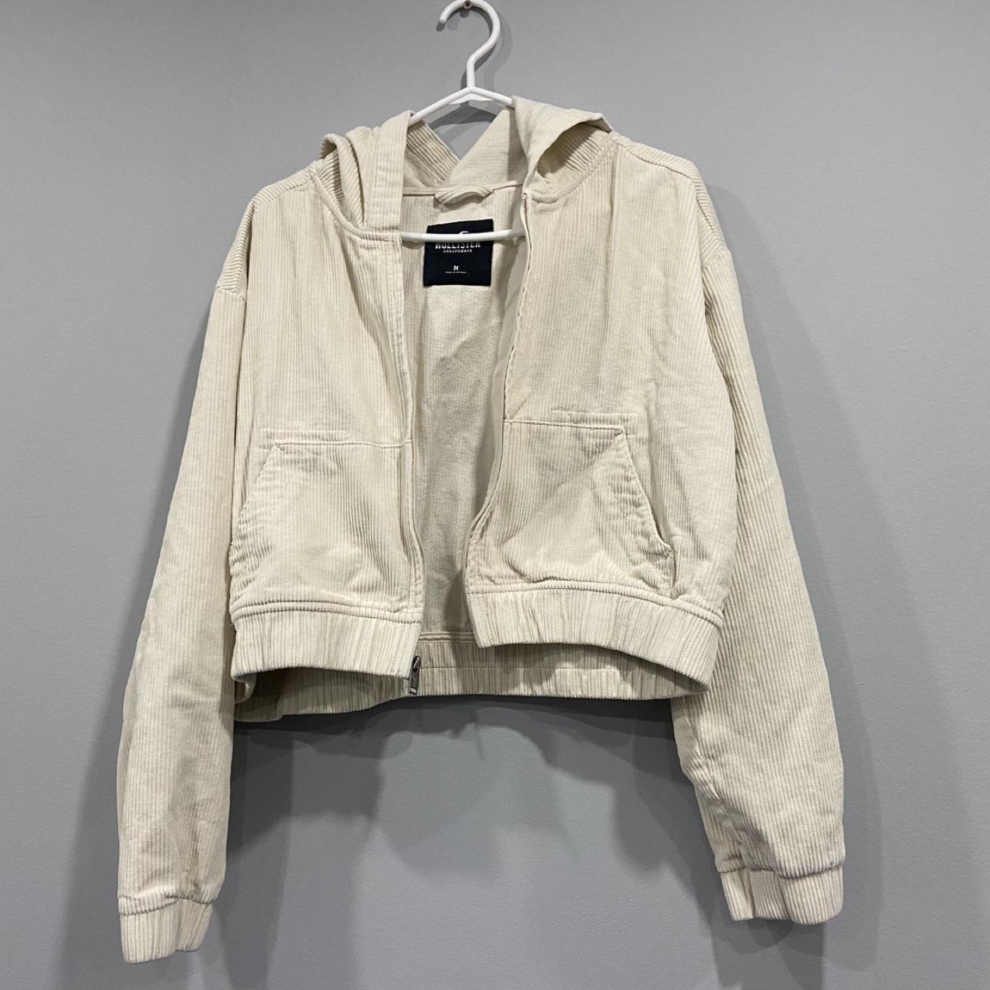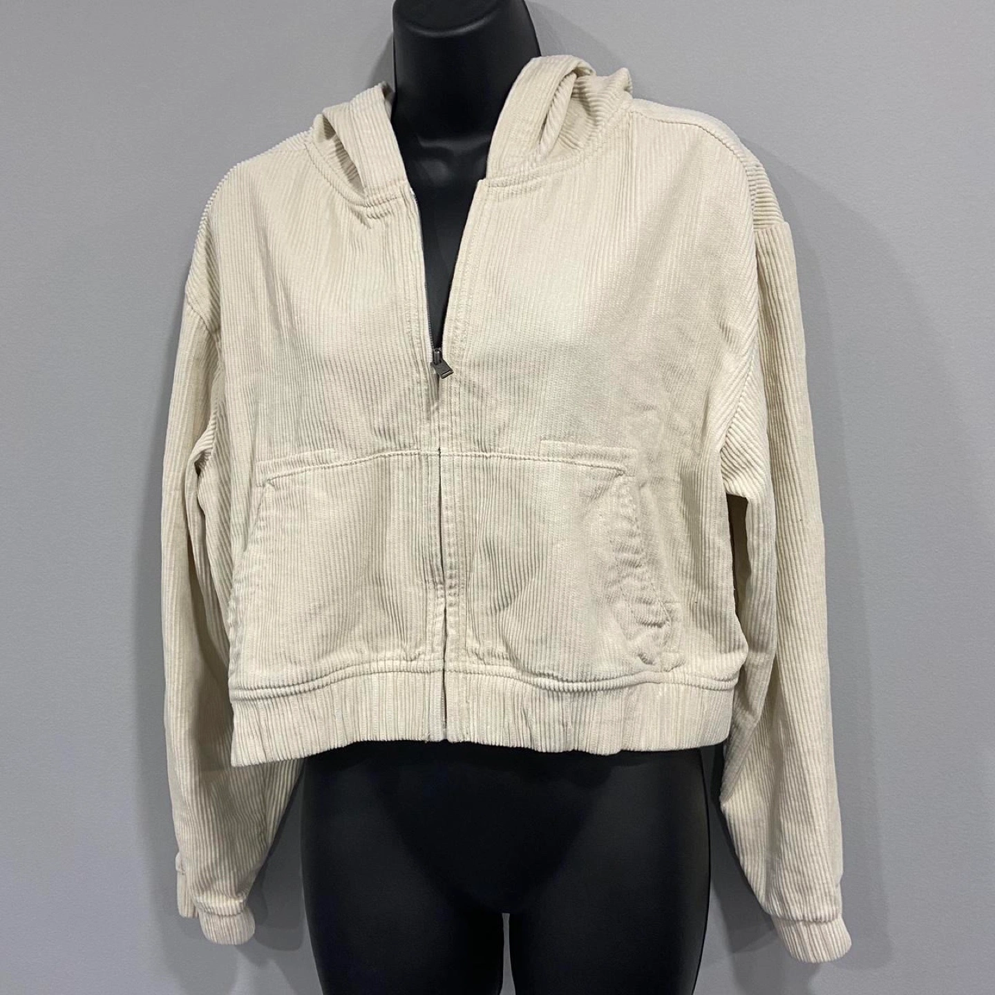 Bomber style zip up. light corduroy jacket/sweater in a size medium from Hollister. Loose fit and only worn twice. Super cute in a light cream color. Retails for $79 after tax. Sold out on site!