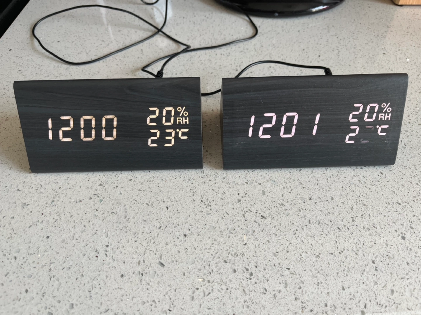 Pair of Digital LED Alarm Clocks with Temperature and Humidity