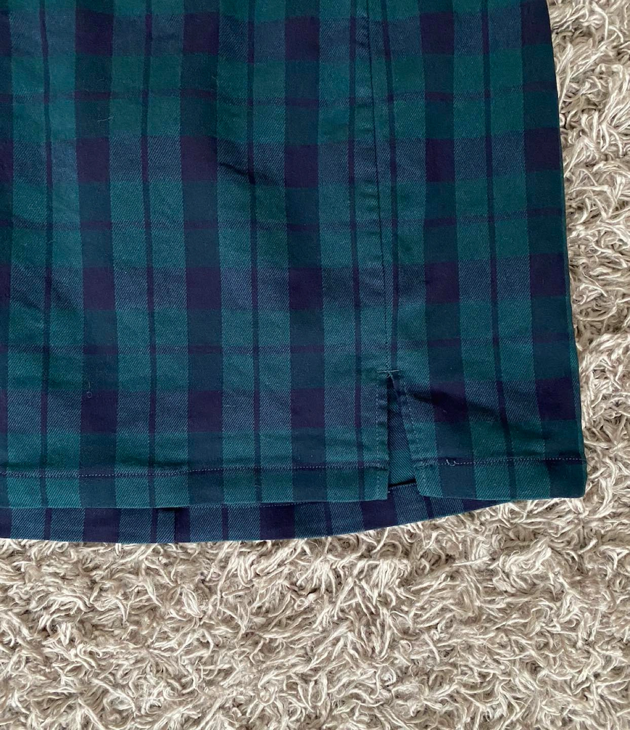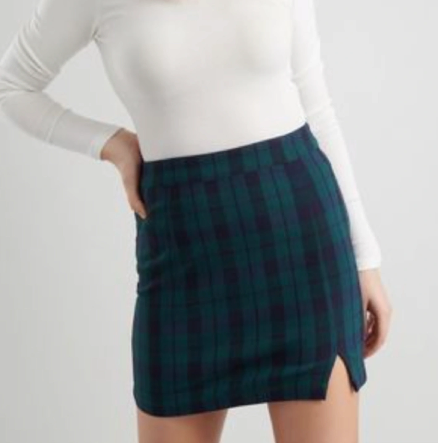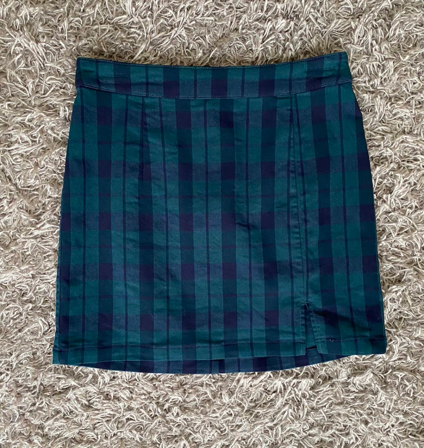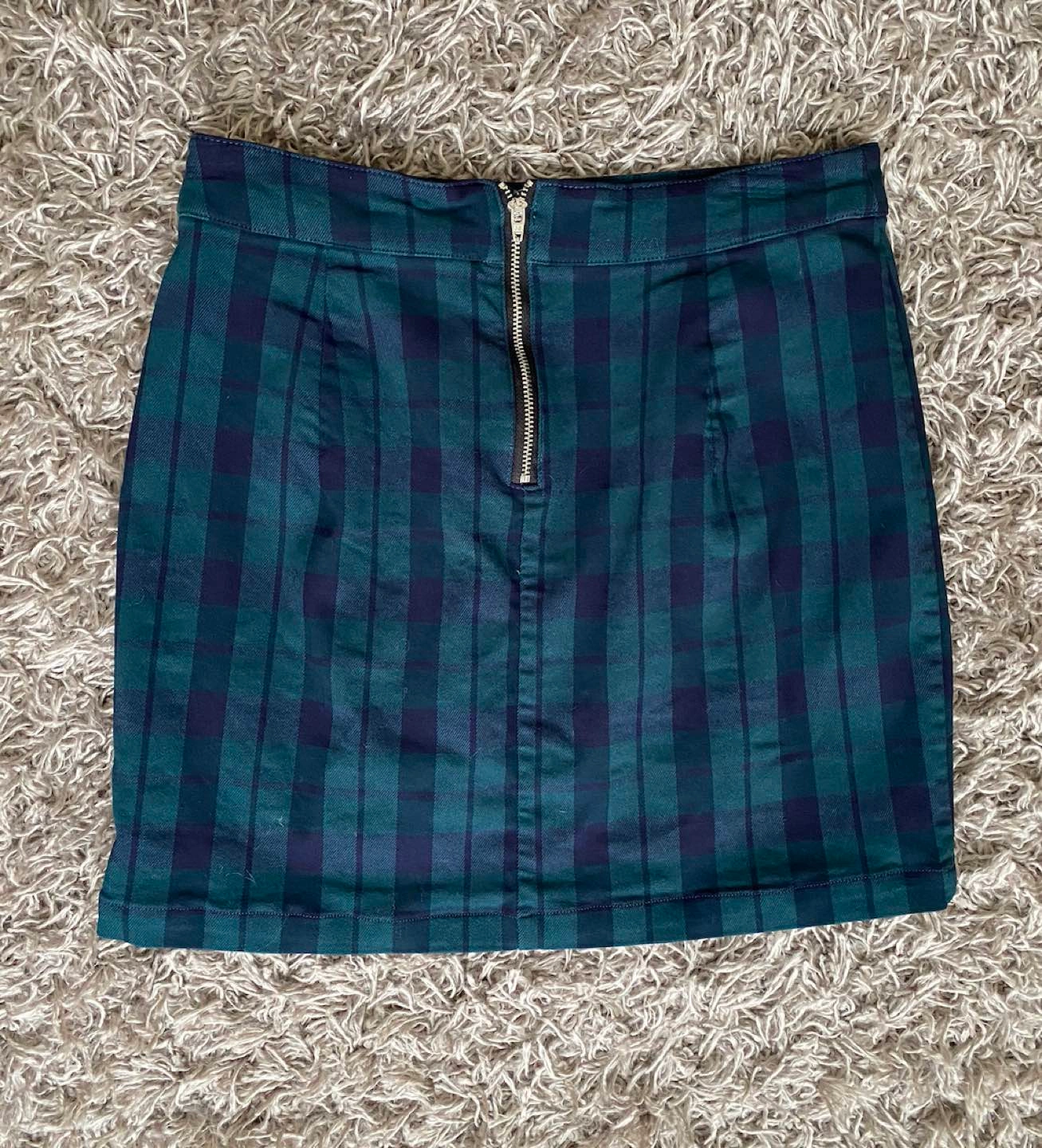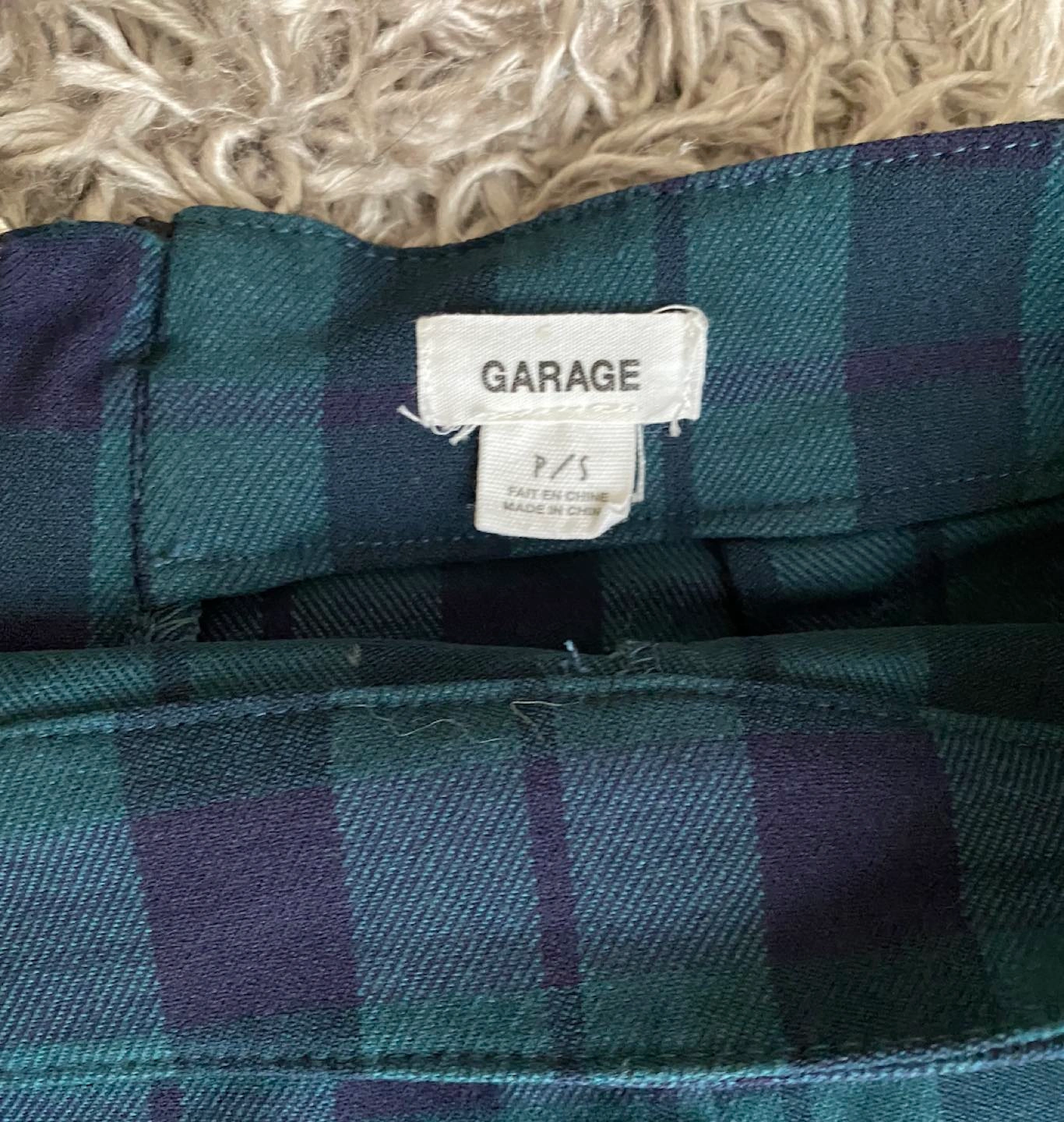 In great condition, barely worn GARAGE blue and green plaid mini skirt. No rips or stains! Size small, has a bit of stretch.