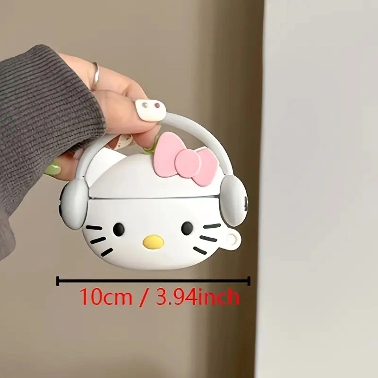 Cute Hello Kitty design. Silicone case. Headphone detail. Protective cover. Compact size.