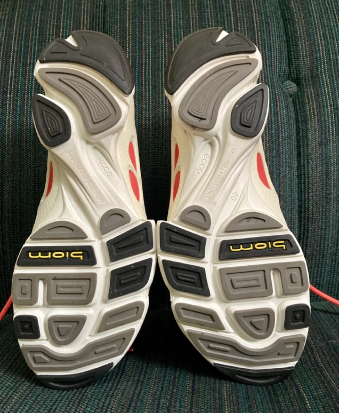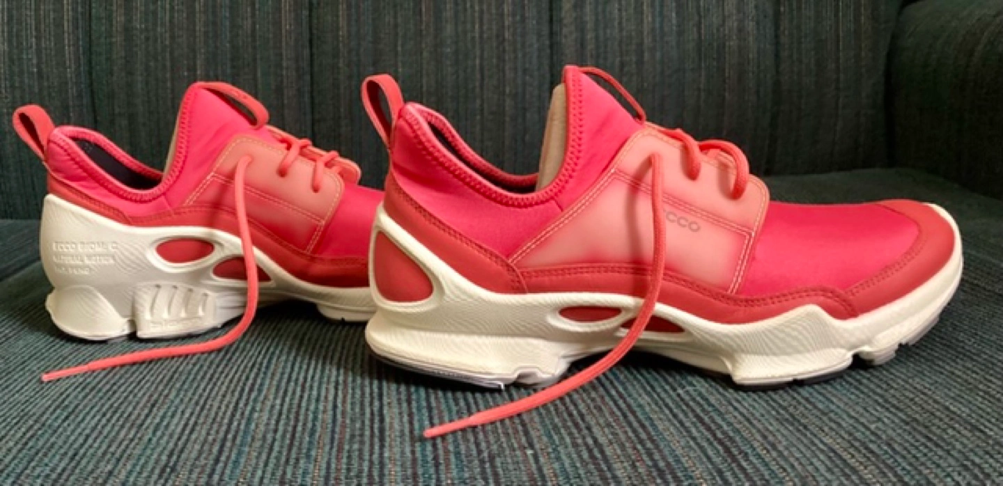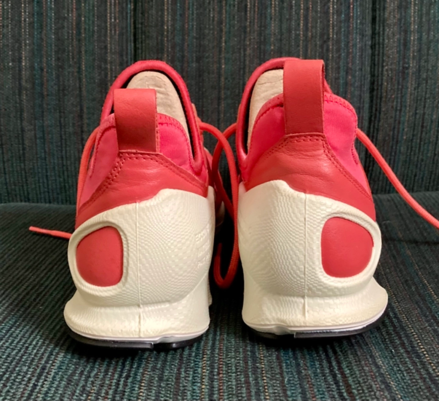 48Women's running shoes. Coral pink colour. Lace-up closure. Lightweight design. Natural Motion Technology. Comfortable fit. Excellent condition. FREE TO MOVE Whether walking, running or wandering, ECCO BIOM® sneakers and footwear offer a barefoot feel for a supported natural stride. LIGHT AND BOUNCY ECCO BIOM® footwear features ultra- light PHORENE ™ midsoles for added energy return and rebound.