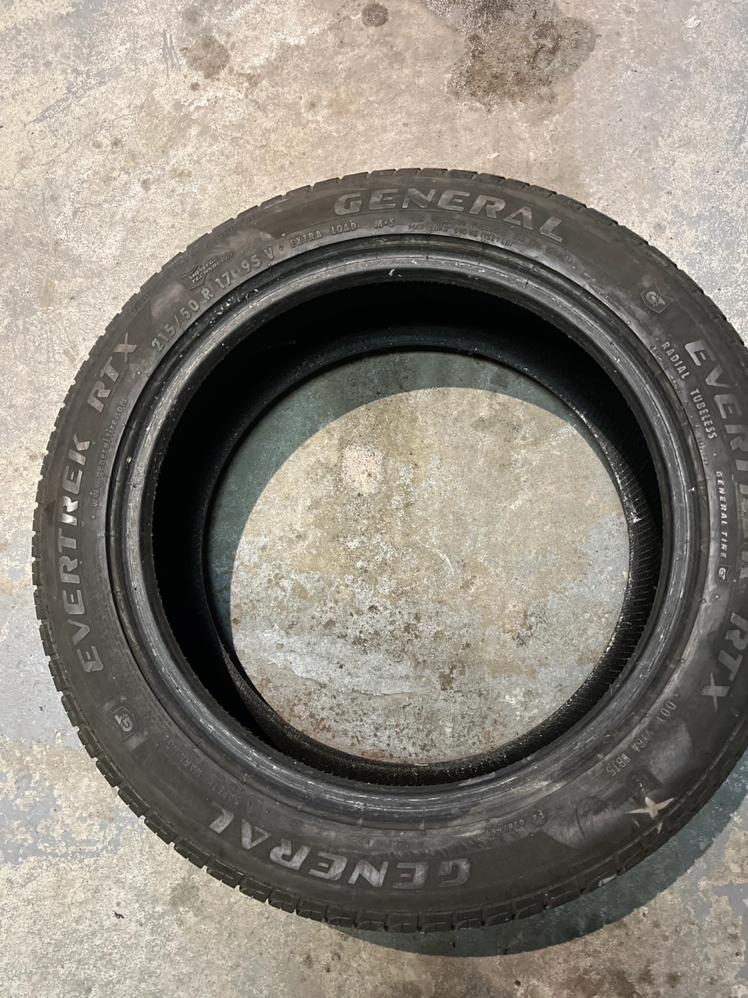 Used General Evertrek RTX tires. Size 215/50R17 95V. Extra load. Radial tubeless.