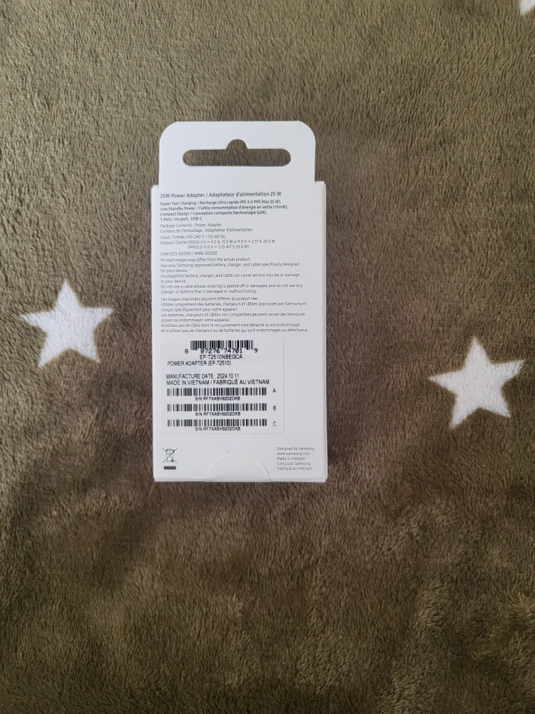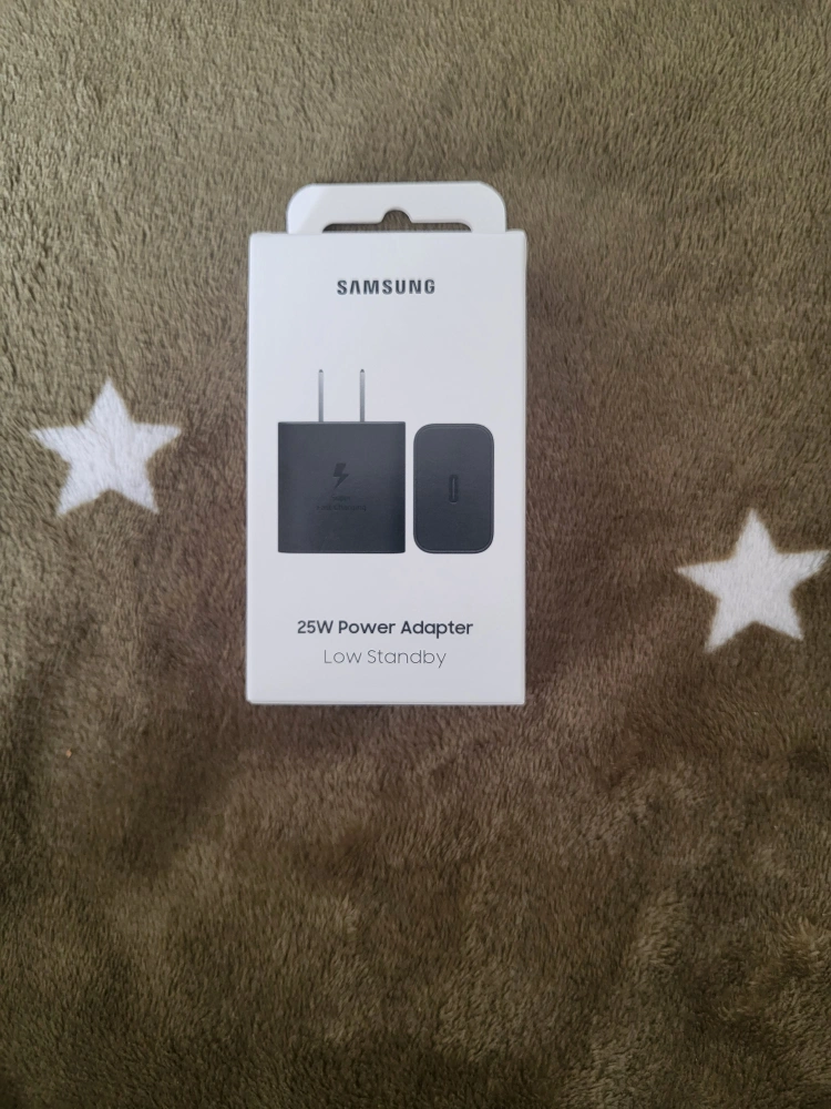 Sealed New Samsung 25W fast power adapter. Compact design. Low standby power consumption. Includes power adapter and cable.