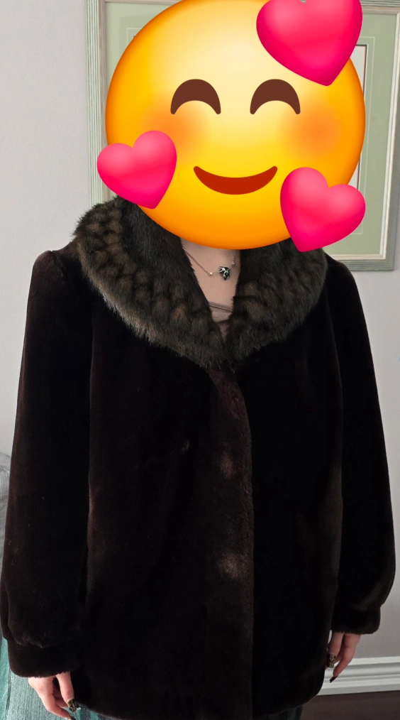 133Vintage Luxurious dark brown faux fur coat. Features a contrasting collar. Looks great on. Excellent condition.A $5 discount will be applied if purchased with another item from my listings.