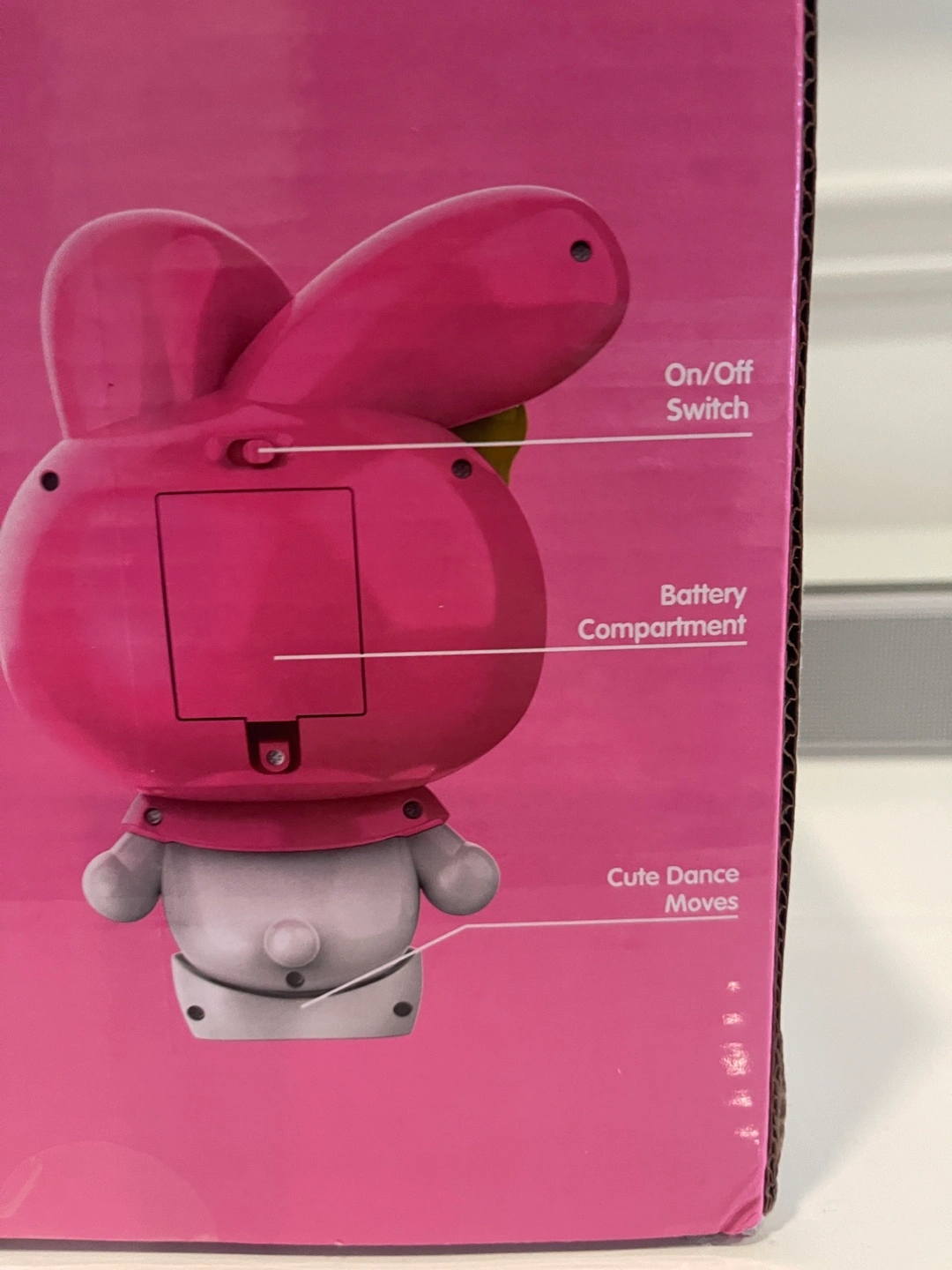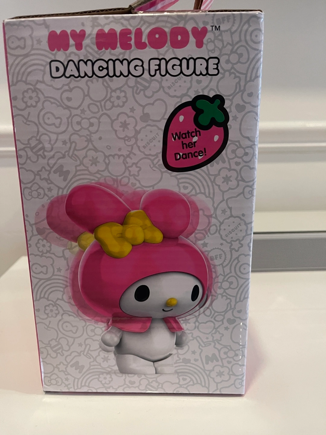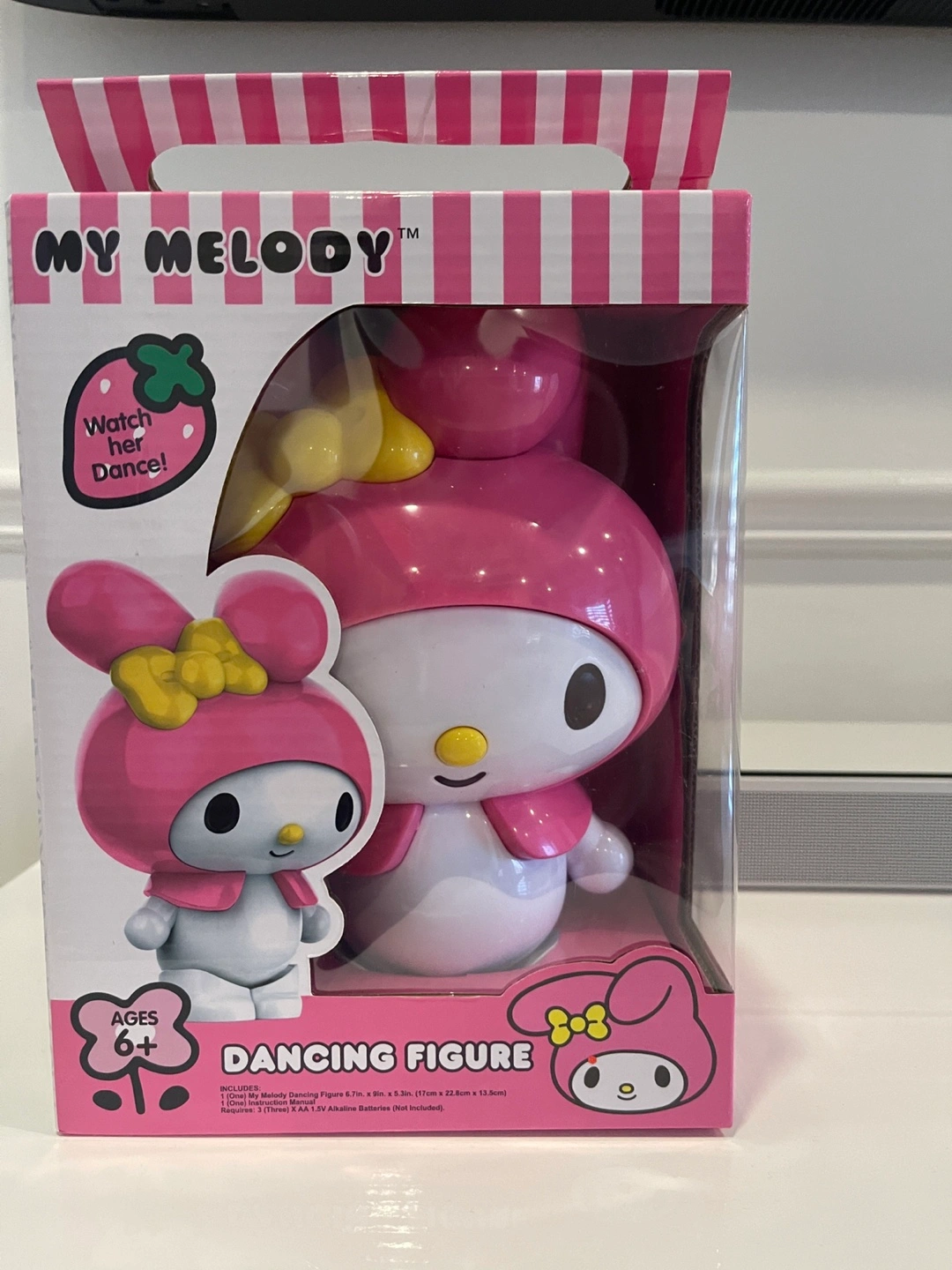 78Cute My Melody dancing figure. Ages 6+. Features cute dance moves. Battery operated. Thickson and Dundas Whitby