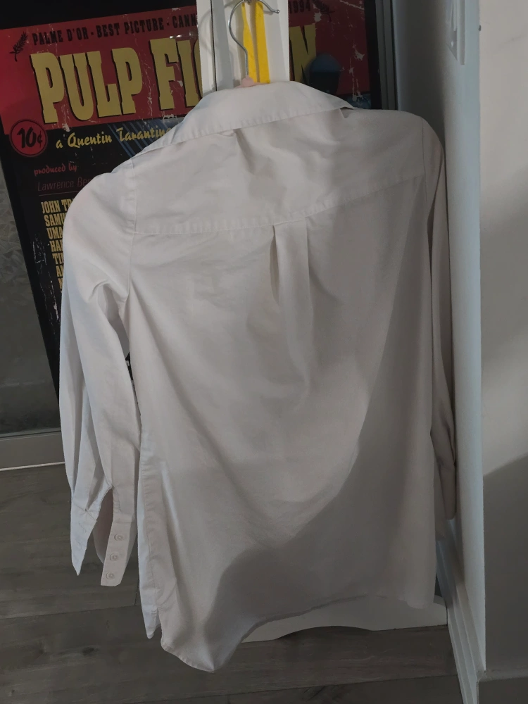 Women's white long-sleeve button-down shirt. Size extra small. Relaxed fit, will probably fit a small as well.