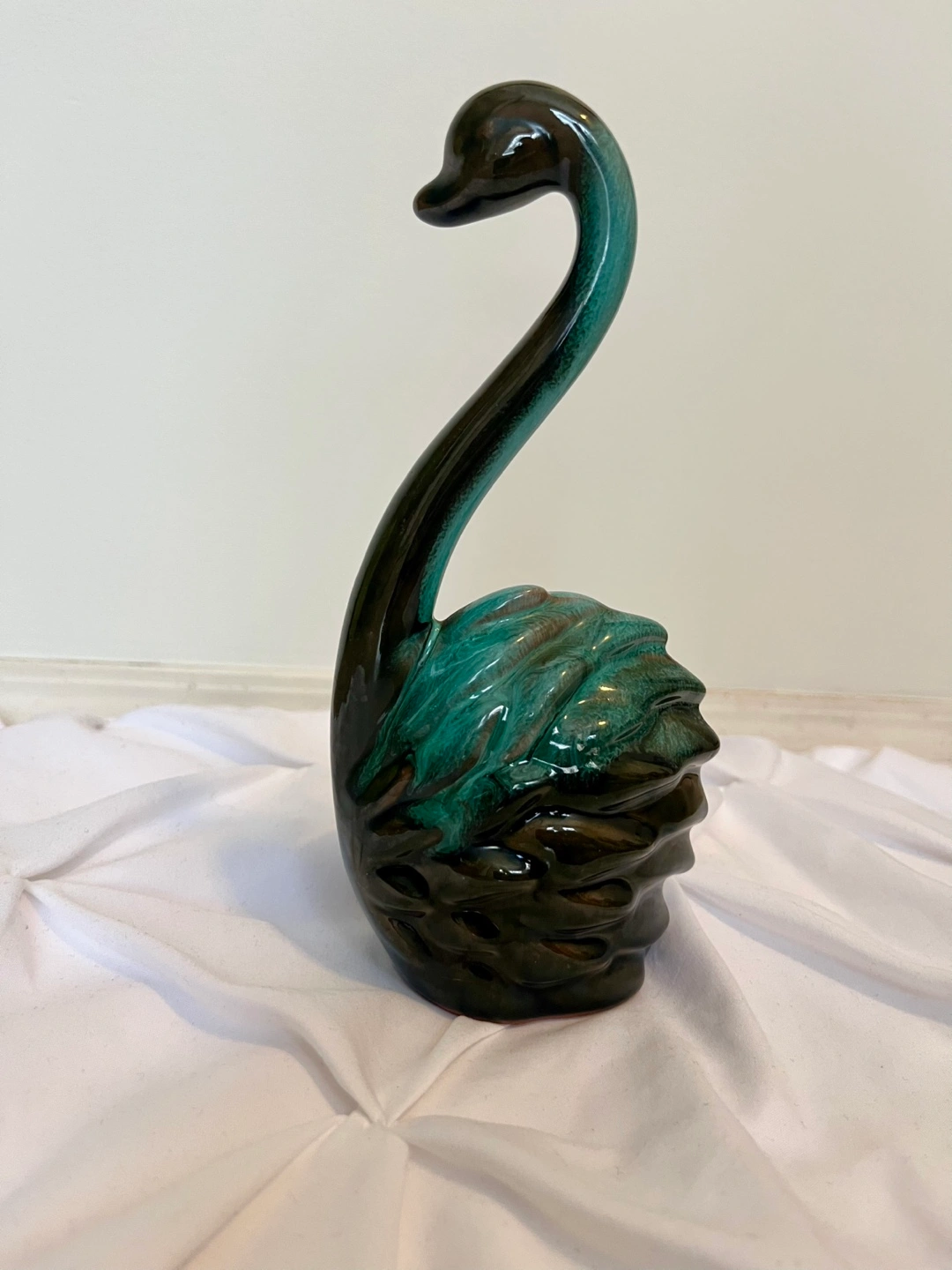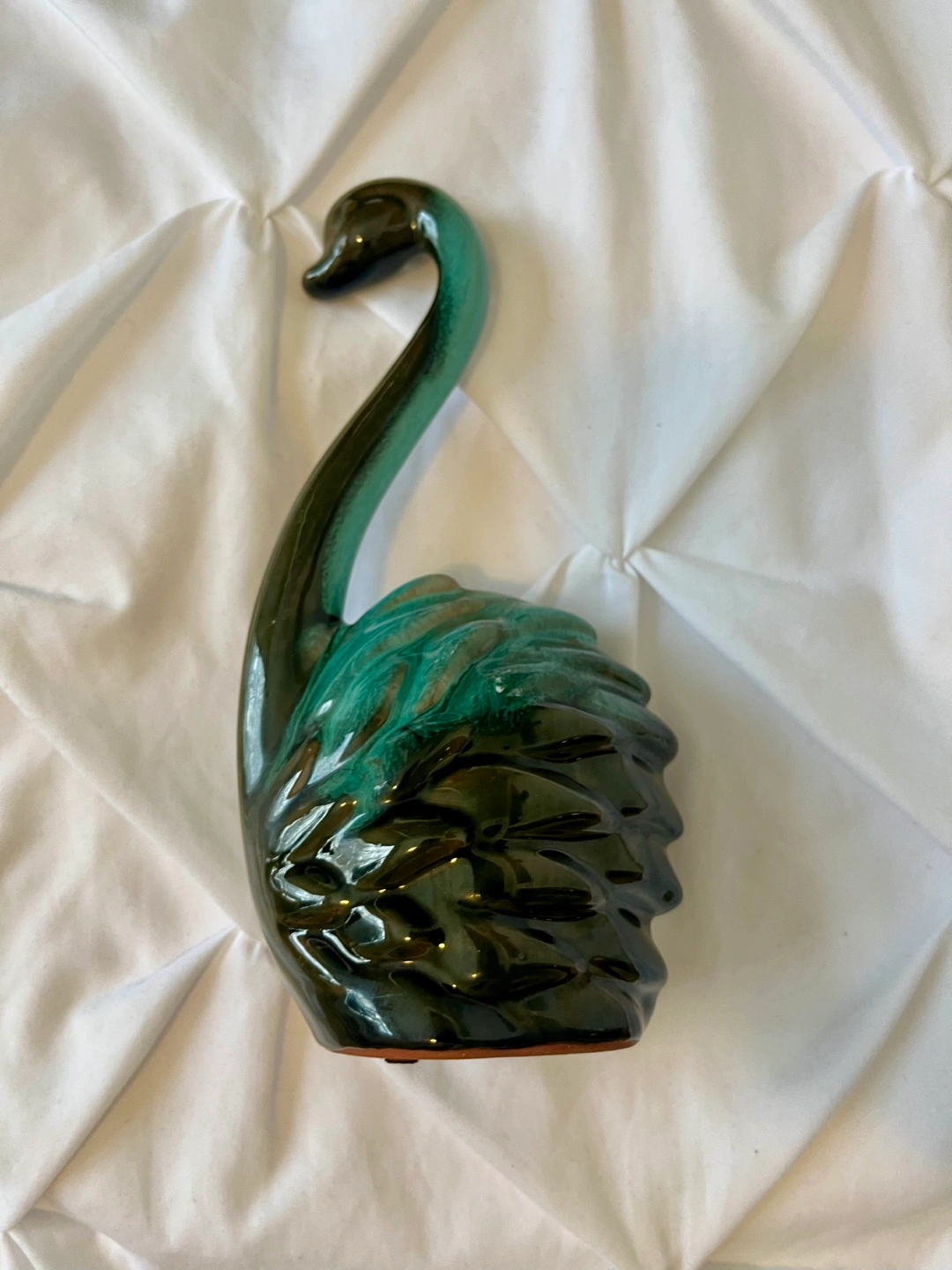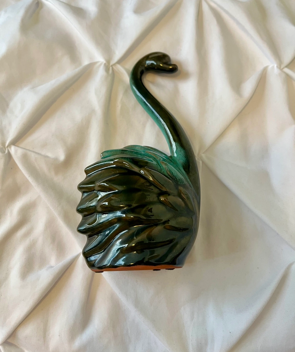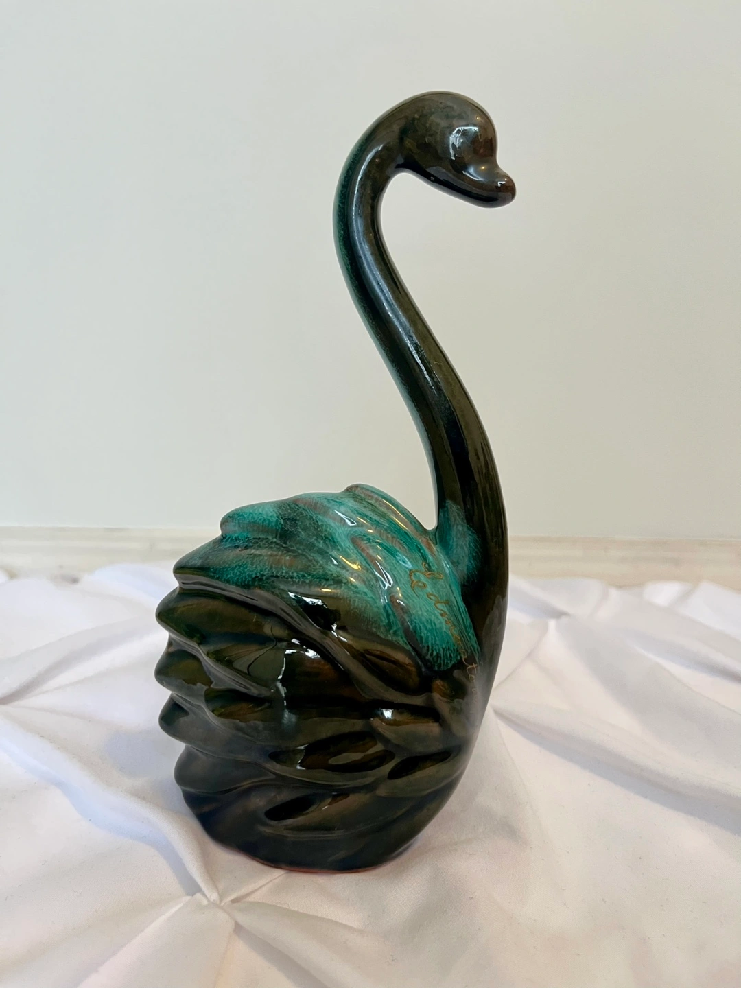 Beautiful dark green and teal glazed ceramic swan. Unique design. Great for collectors or home décor. Small size.