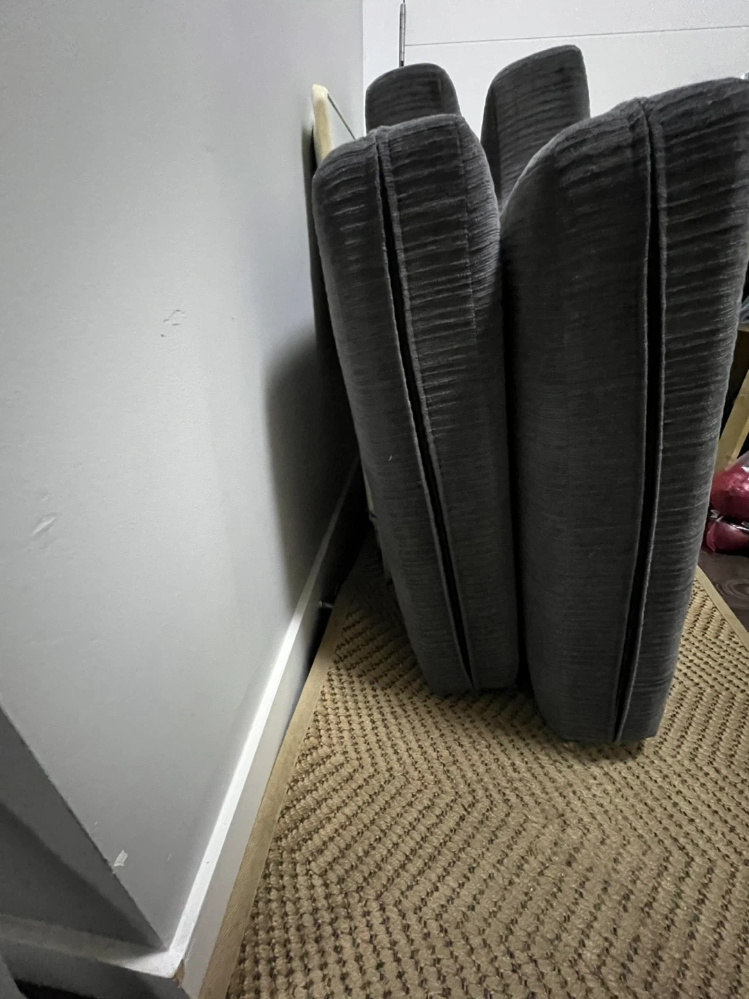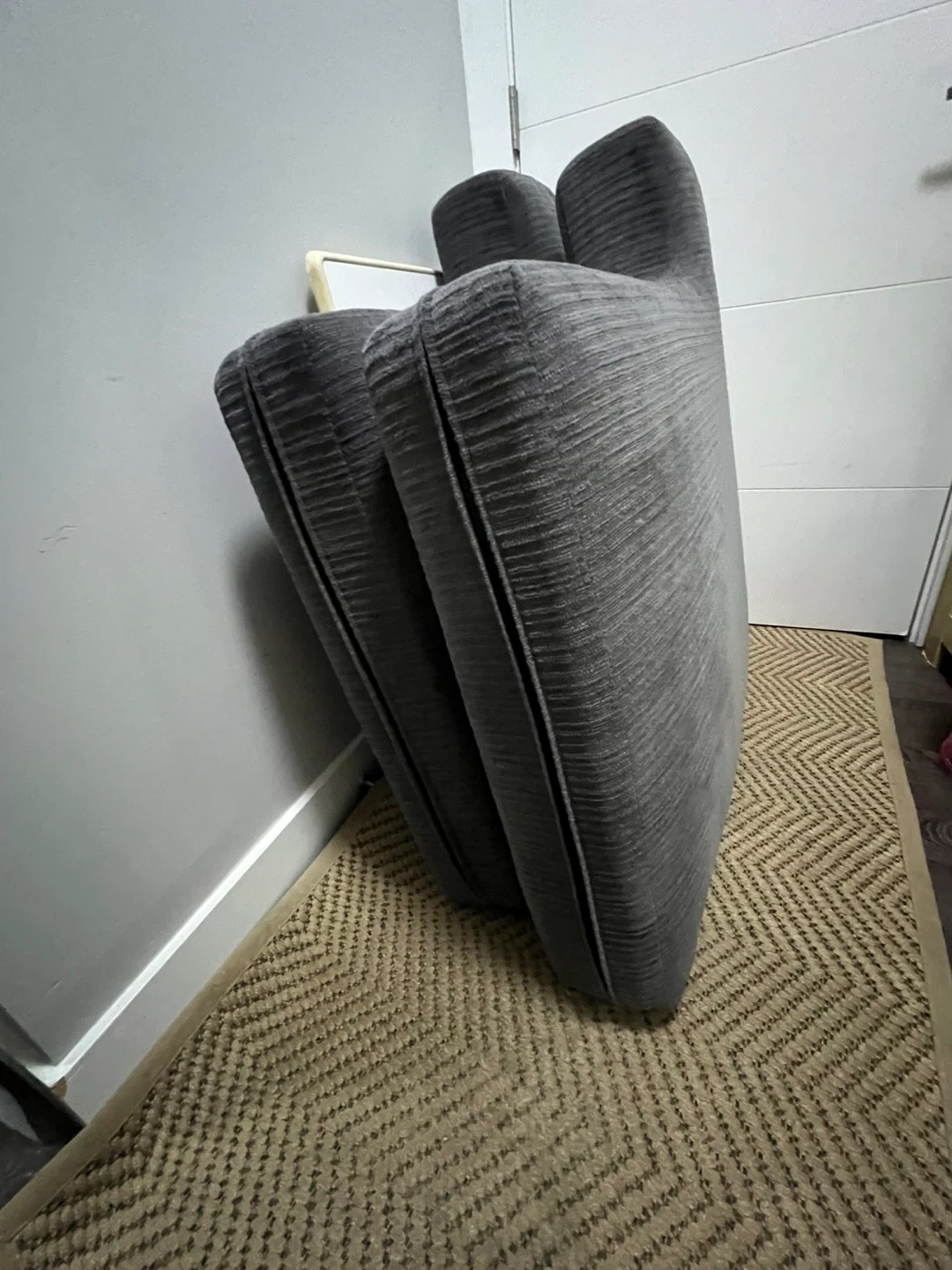 Set of nice, firm grey corduroy cushions from a Brick couch.