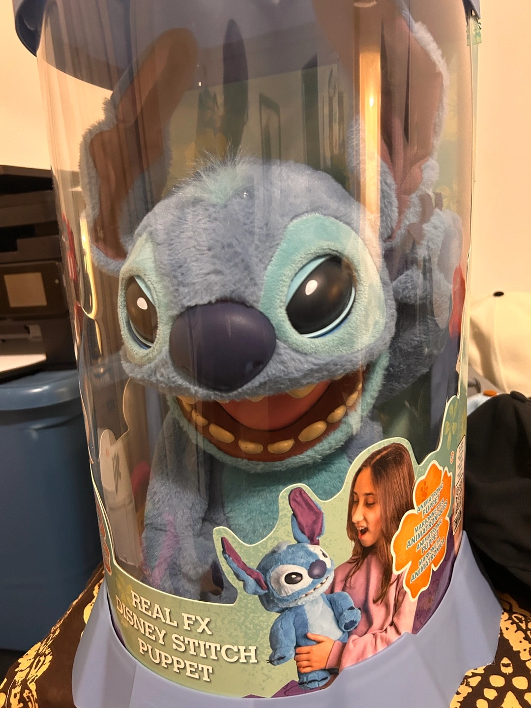 Large Stitch puppet. Features 100+ sounds and actions. Reacts to touch and movement. Includes dual interactive puppet play. In original packaging.