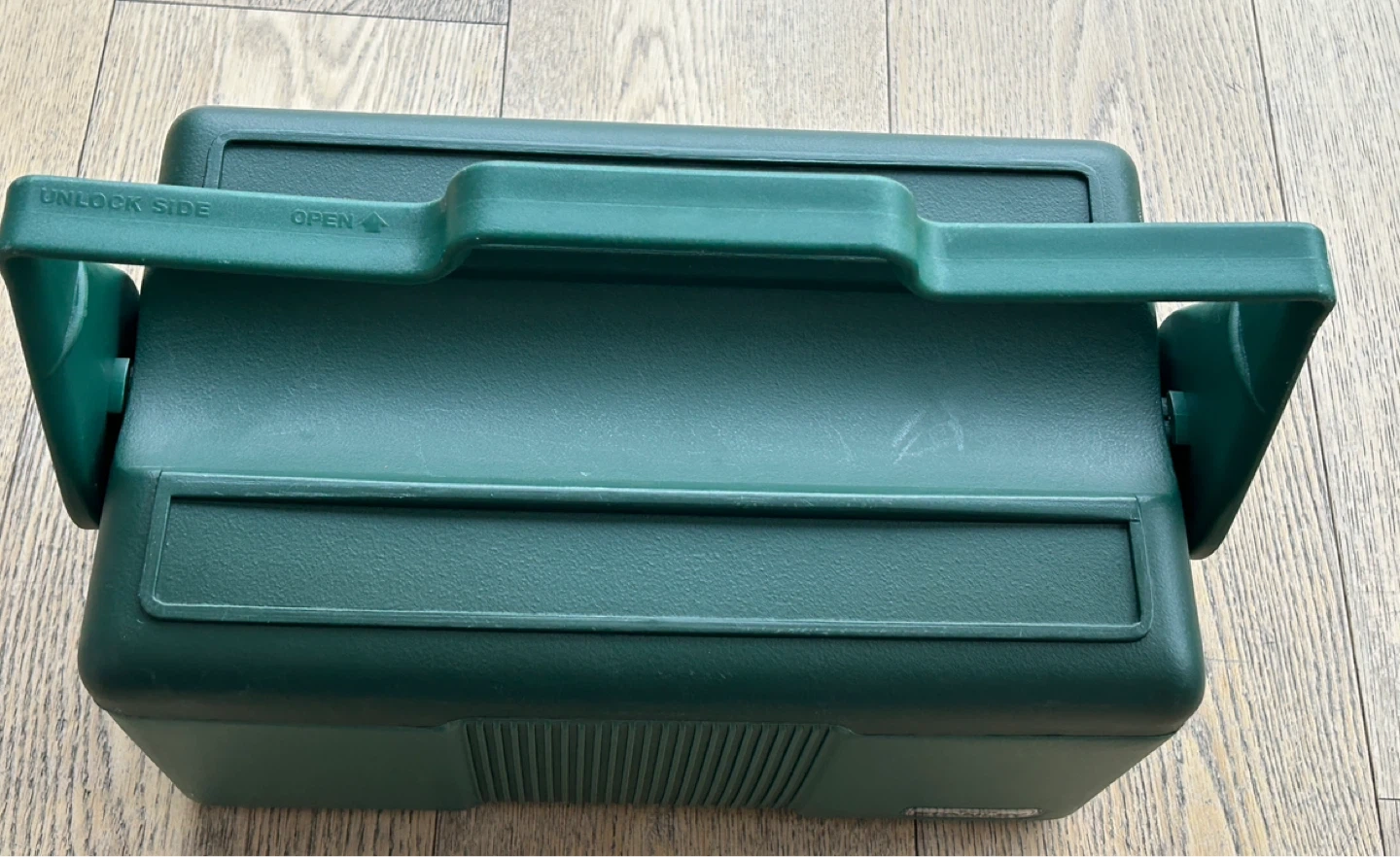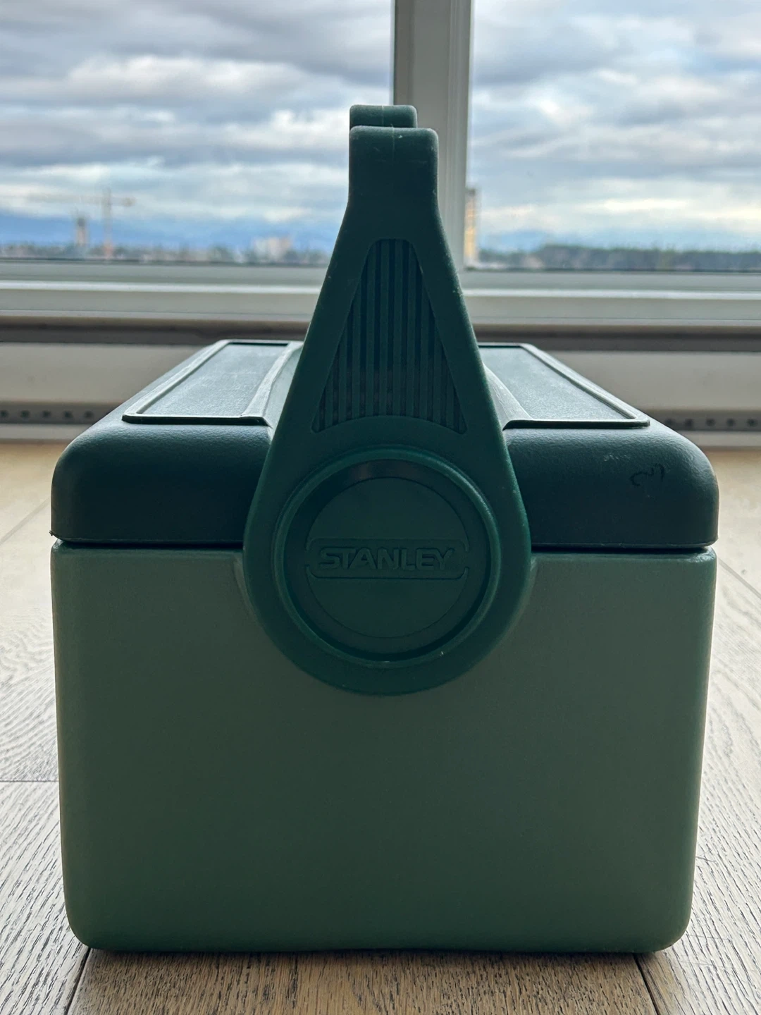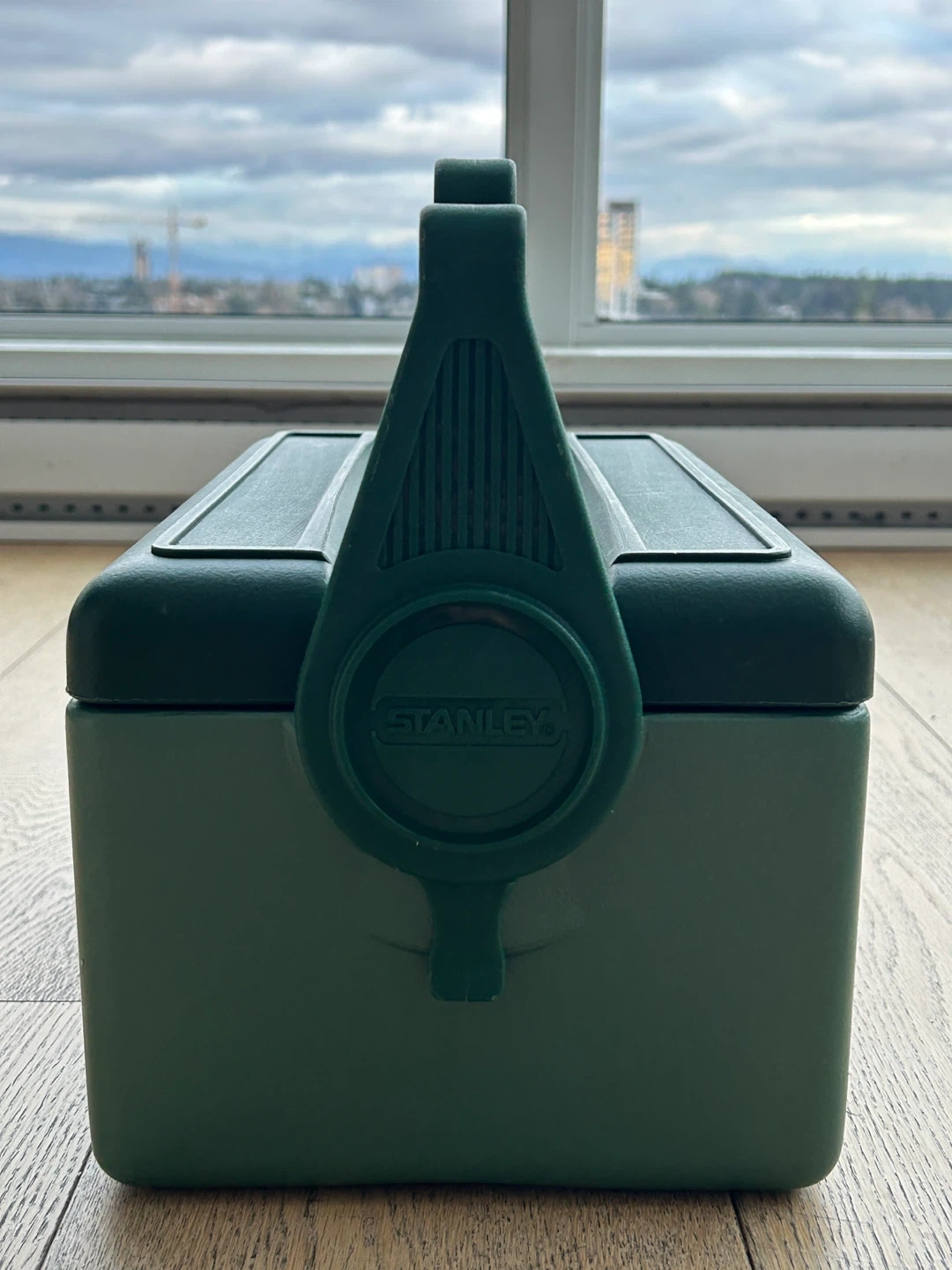 Vintage Green Stanley cooler box. Made by Aladdin Industries in the USA. It has a sturdy handle and lid. Beautiful green colour. Very good condition.