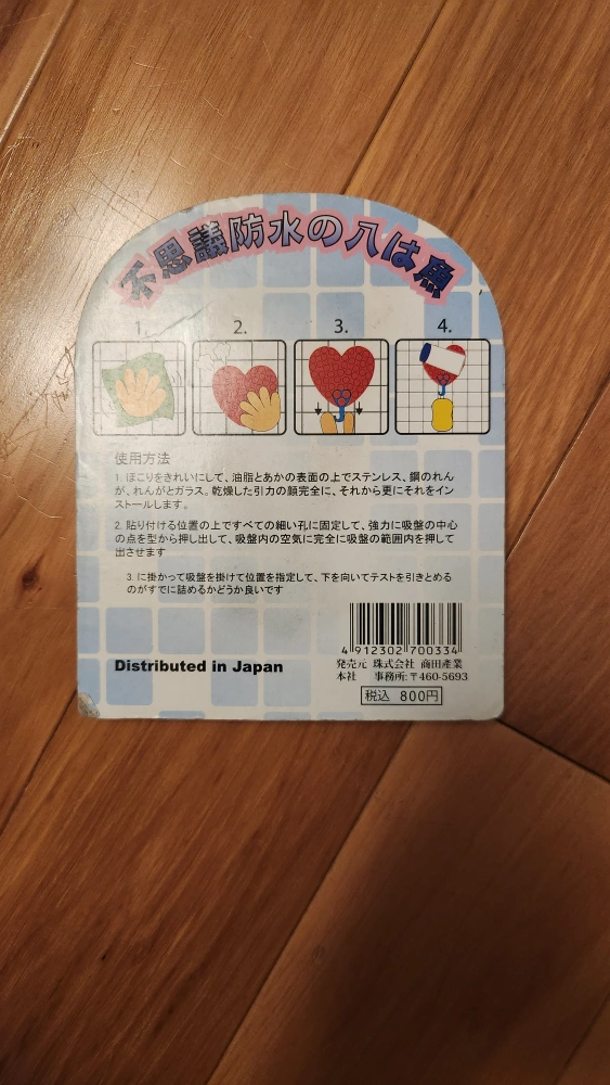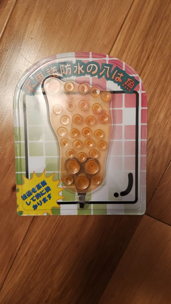 269Unique foot-shaped shower suction cup hook. Clear plastic with suction cups. Distributed in Japan.