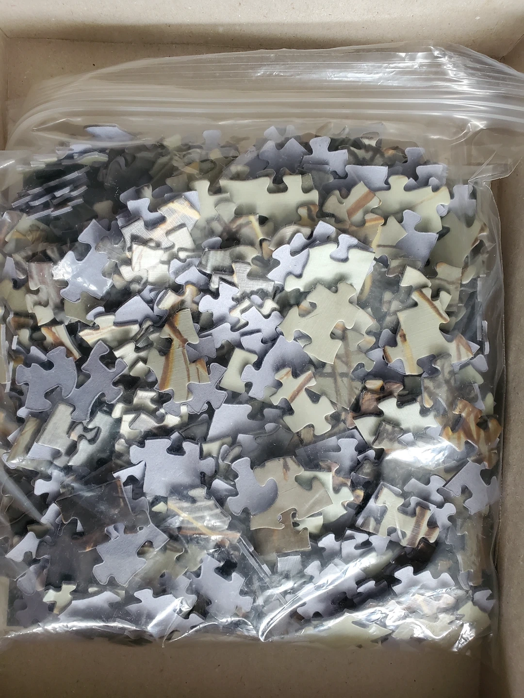 comes with puzzle poster. 500 Large pieces... unique and matte pieces with no glare make this puzzle fun to do!!