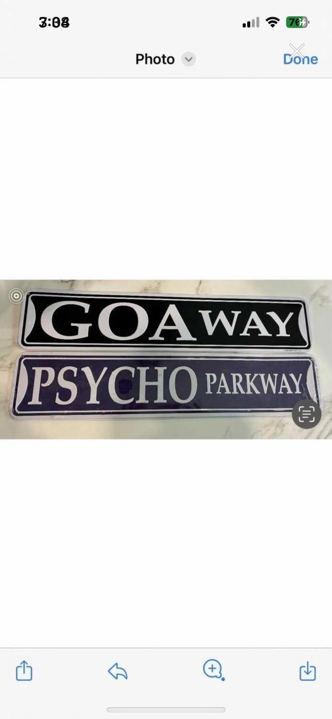 37Two decorative metal street signs. One says Go Away, the other says Psycho Parkway. Fun novelty item for your home or office.