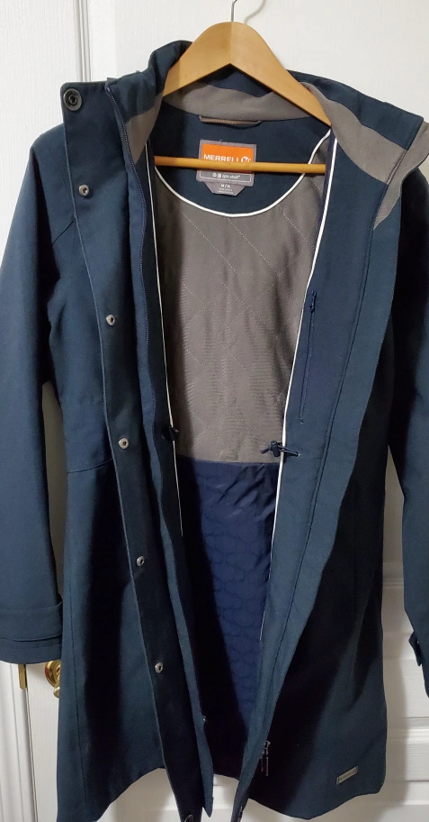 Infrequent wear. In excellent condition. Quality jacket and material. Water resistant. Flattering fit. Tapered waist. Retails $100+