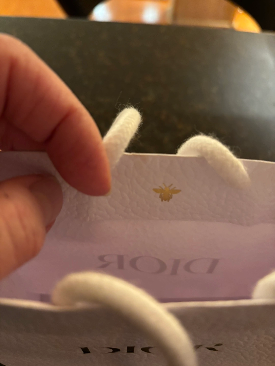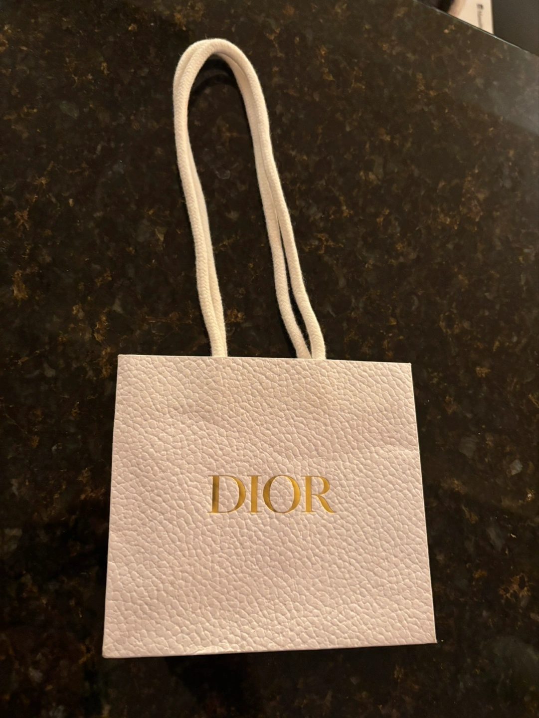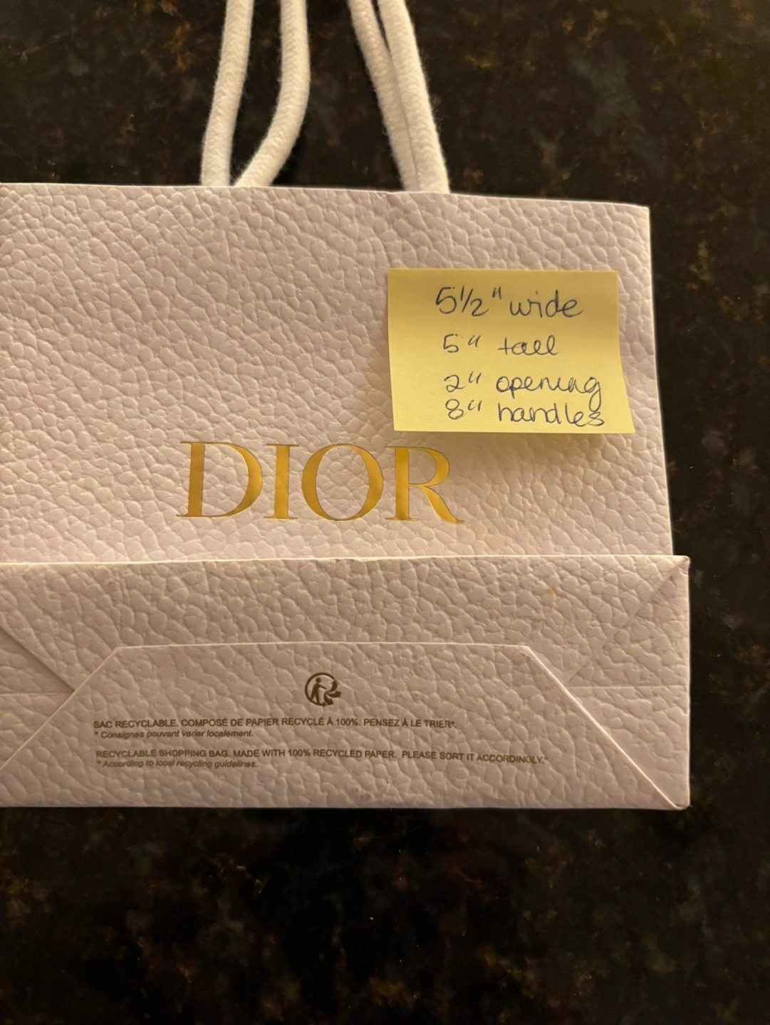 Small white Dior shopping bag. Features gold lettering and bee logo. Recycled paper. Great for gifting or storage. From a smoke and pet free home. Pickup in the St Lawrence market area of downtown Toronto. Cash only.