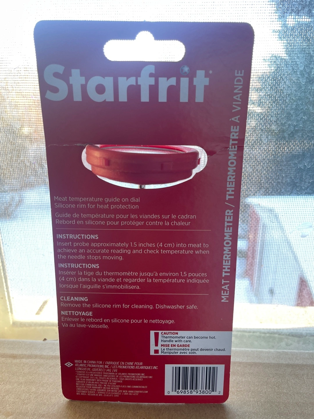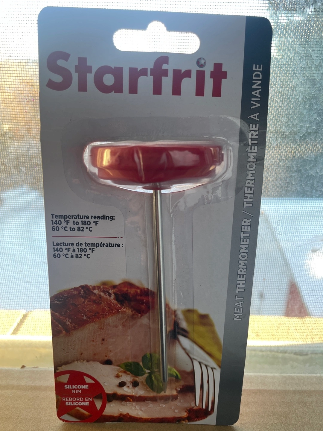102New in package. Silicone rim for heat protection. Measures temperature from 60°C to 82°C or 140°F to 180°F. Dishwasher safe.
