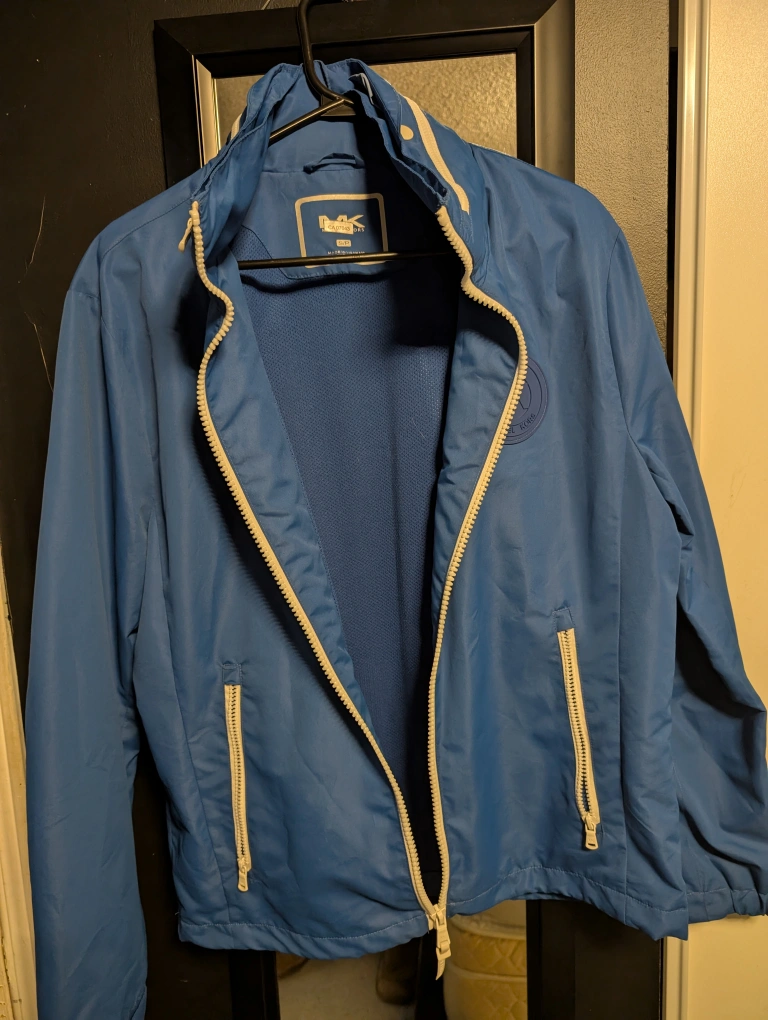 95Rain Coat / Windbreak Style Jacket Can see the blue is more vibrant in the one picture.