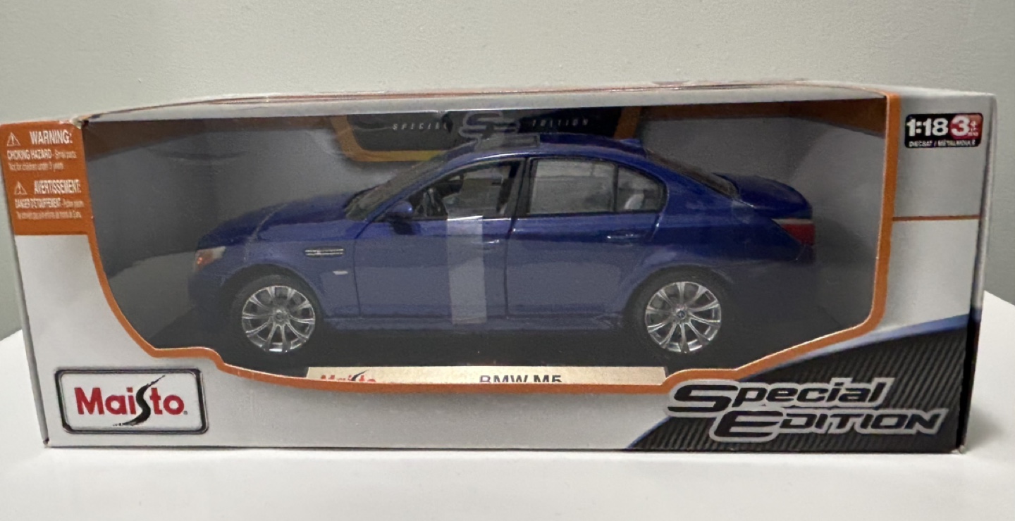 Buy & SellMaisto 1:18 Die Cast Model BMW M5Maisto 1:18 Die Cast Model BMW M5$30BMW M5 1:18 die cast model car Maisto Special Edition $30 or best offerConditionLike newWHERE TO MEETCheck LocationView MapSELLERBarnabaJunction Area878 reviews0 chats·0 favorites·26 viewsSEND CHAT TO SELLERHi Barnaba! I’m interested in your listing.Hi Barnaba! I’m interested in your listing.Get the Karrot app to chatSign In to chat