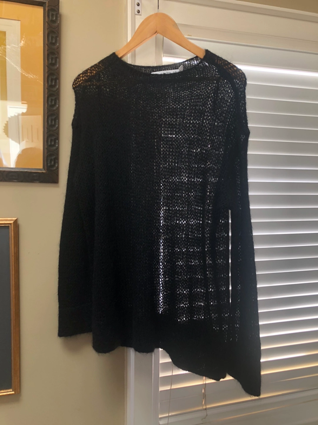 Black mohair blend knit sweater. Open knit design. Relaxed fit. Long sleeves. Size XS. Shoulder to bottom - 30”. From underarm to bottom 18”. Yonge/Davisville pick up. Smoke-free/pet-free home.