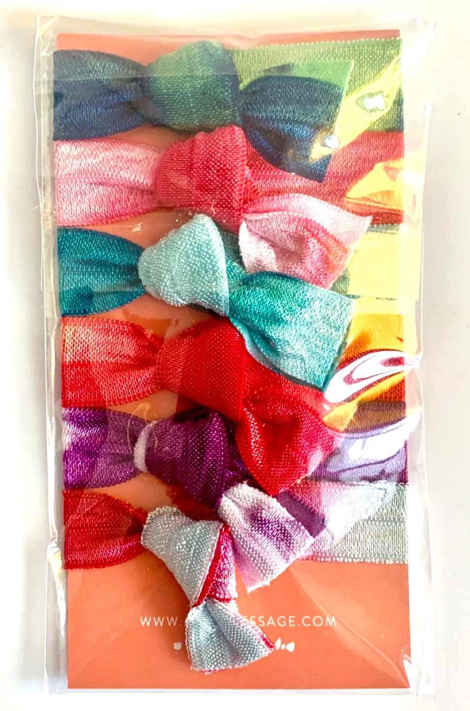 6 colourful tie-dye hair ties. Perfect for adding a pop of colour to any hairstyle. New, unused.
