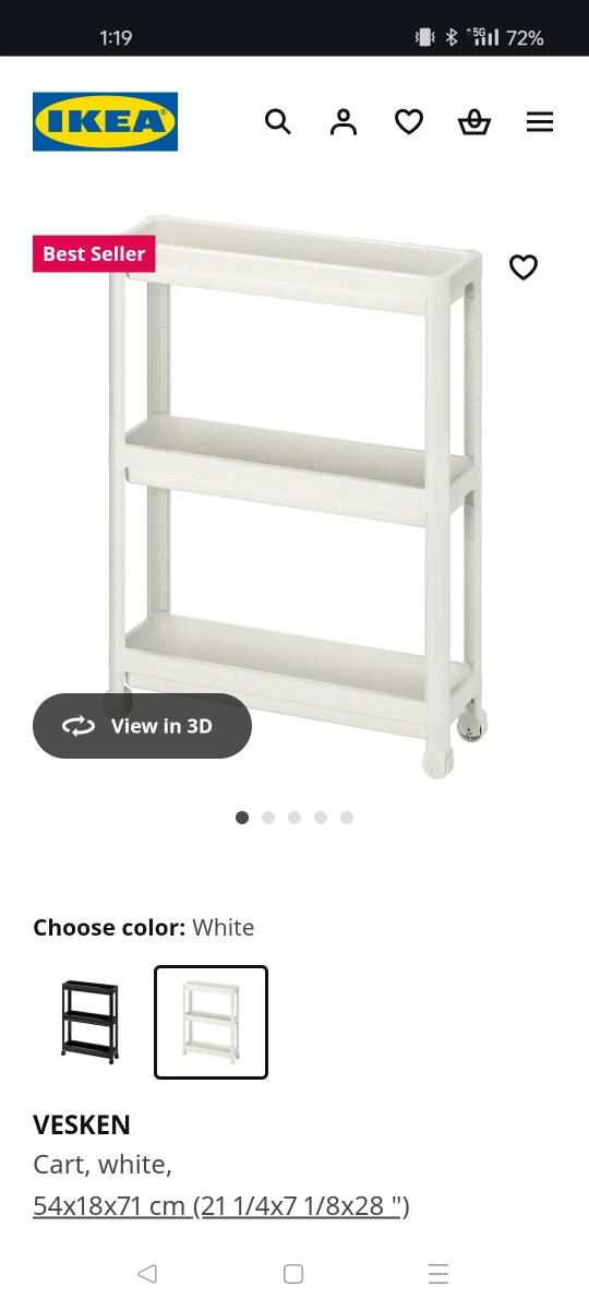 IKEA VESKEN White Cart with 3 shelves