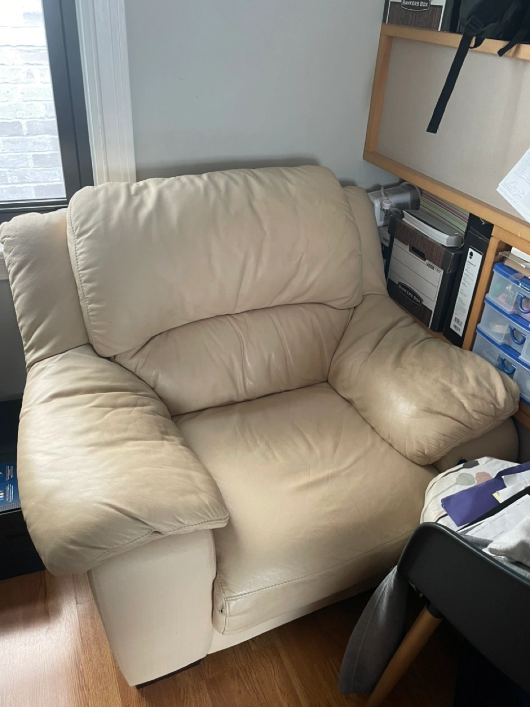 Priced to sell quickly. Very comfortable and cosy. Great condition, eco-leather. We bought it to have a reading spot but didn’t really use it.