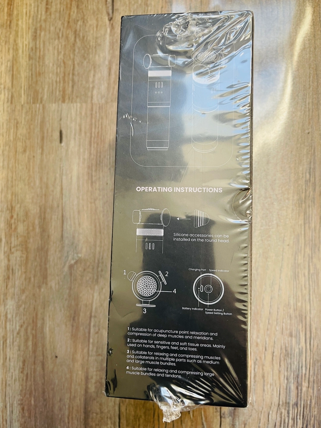 Portable massage uniy. Used by chiropractors and physiotherapists. Four interchangeable massage heads. Multiple speed and intensity settings. Rechargeable battery. Compact and lightweight design. Ideal for muscle relaxation and pain relief.
