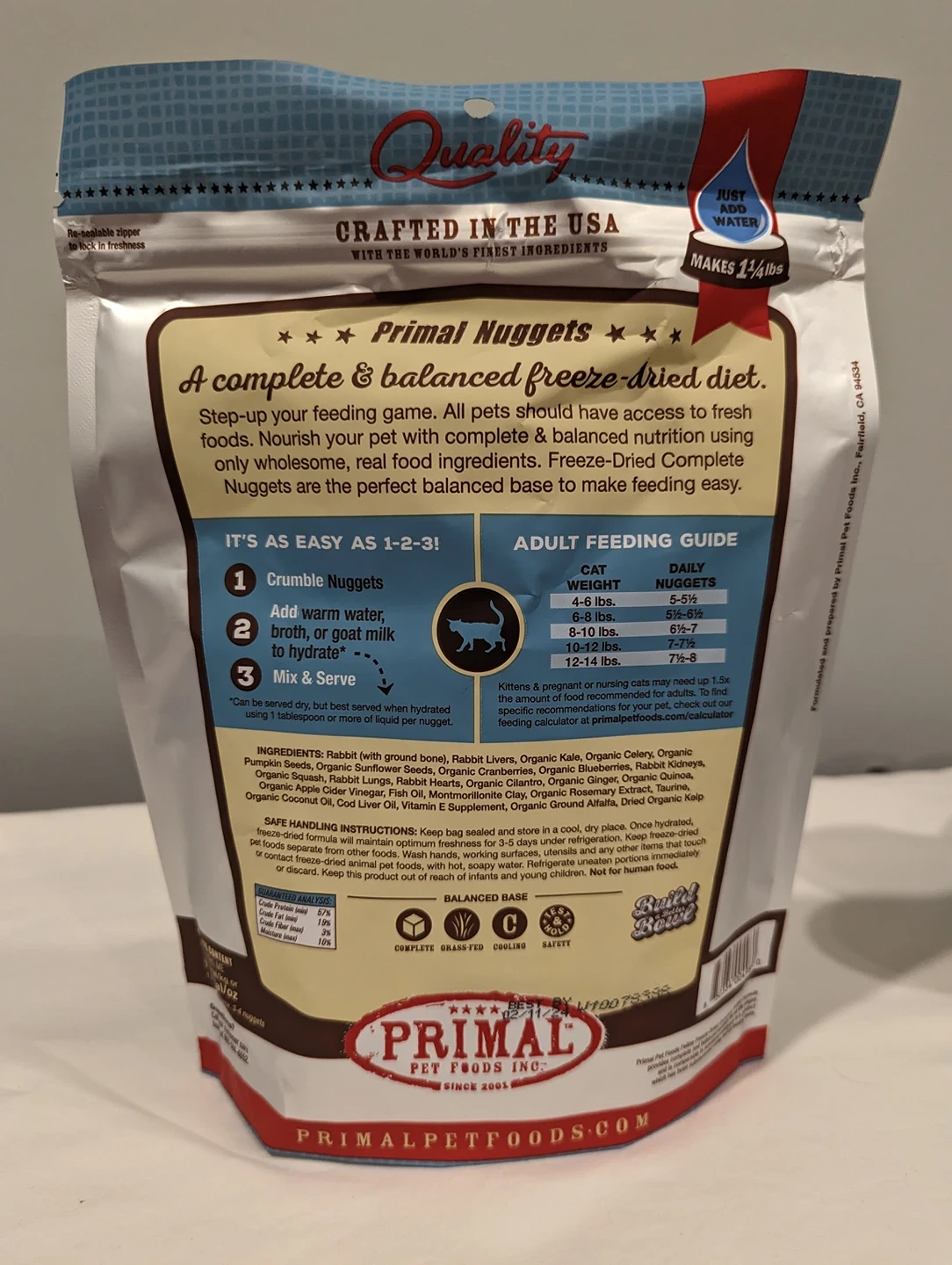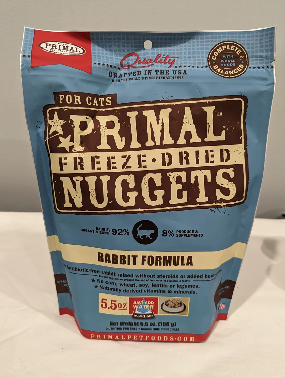 -One 5.5oz bag of Primal Freeze-Dried Nuggets "rabbit formula" (add water to make wet)