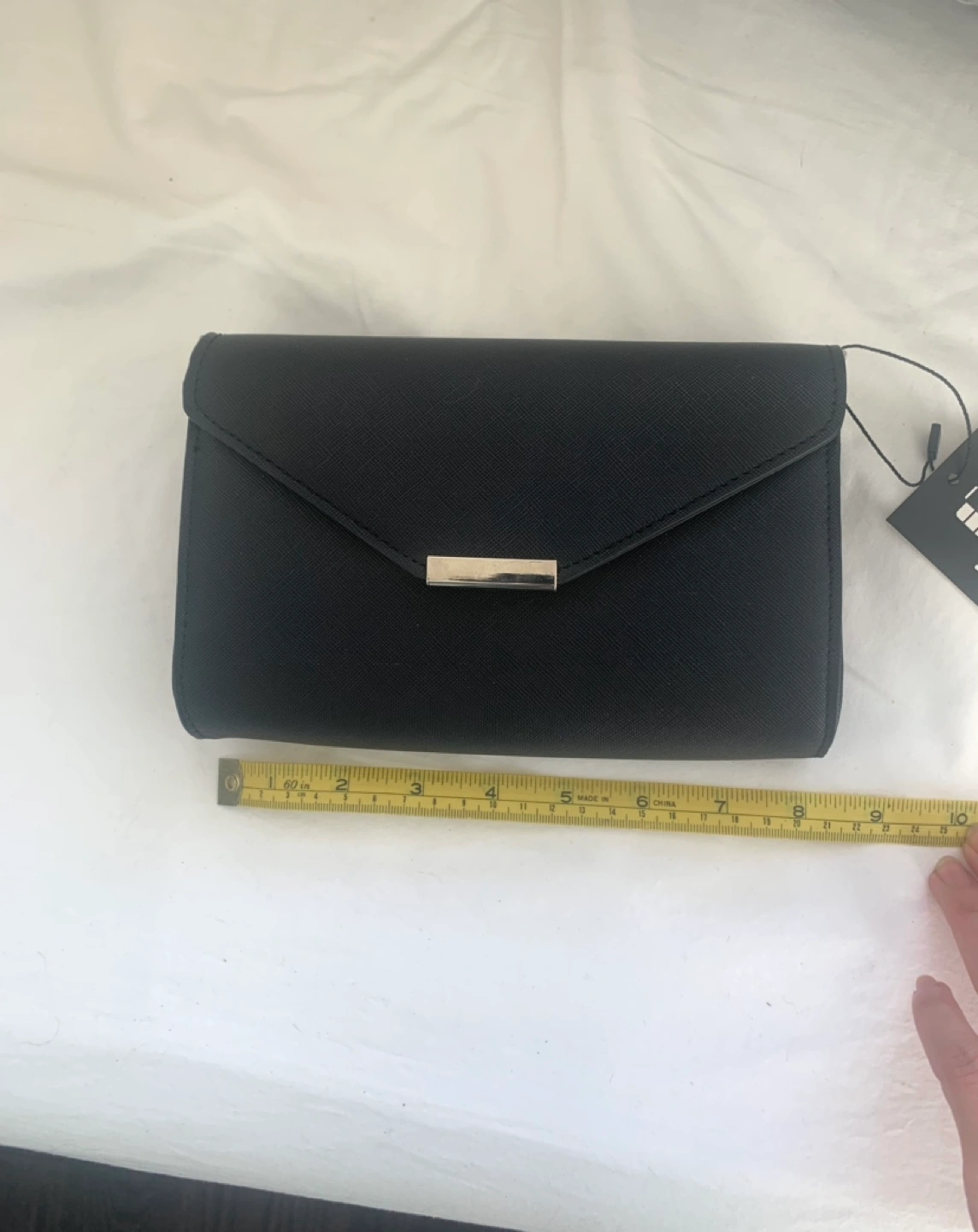 New, black crossbody bag. Features a clear phone pouch that is touchscreen so you can use your phone without taking it out of your purse- and multiple compartments. Detachable strap included. Small, sleek design. Perfect for evenings out. Non- leather. Not sure the material but a sturdy textured almost canvas-like material.