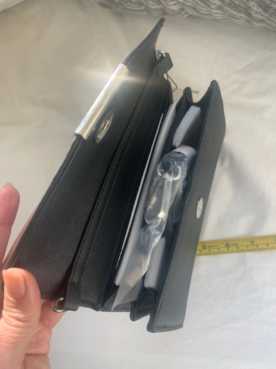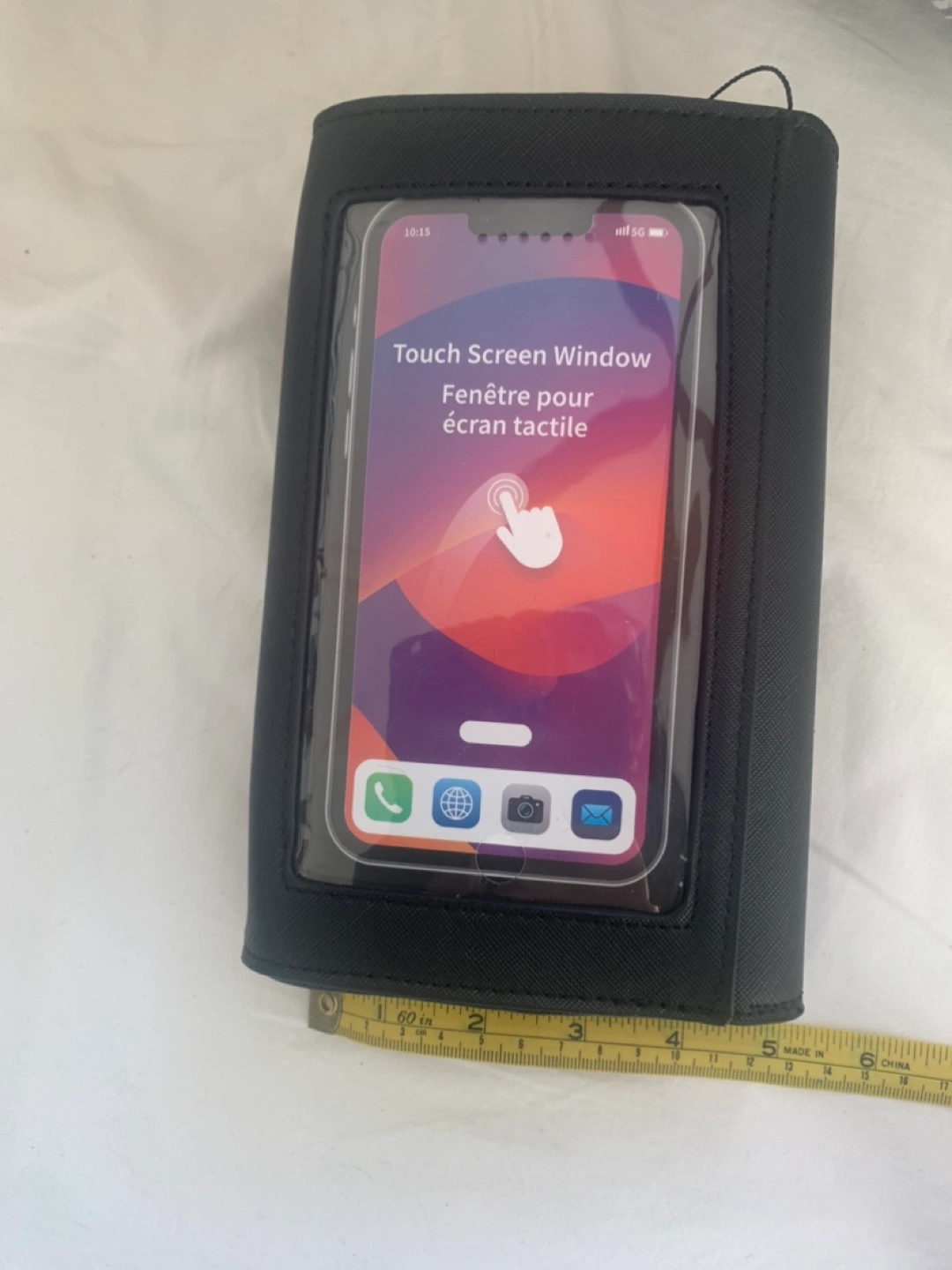 Black Crossbody Bag with touchscreen, clear Phone Pouch