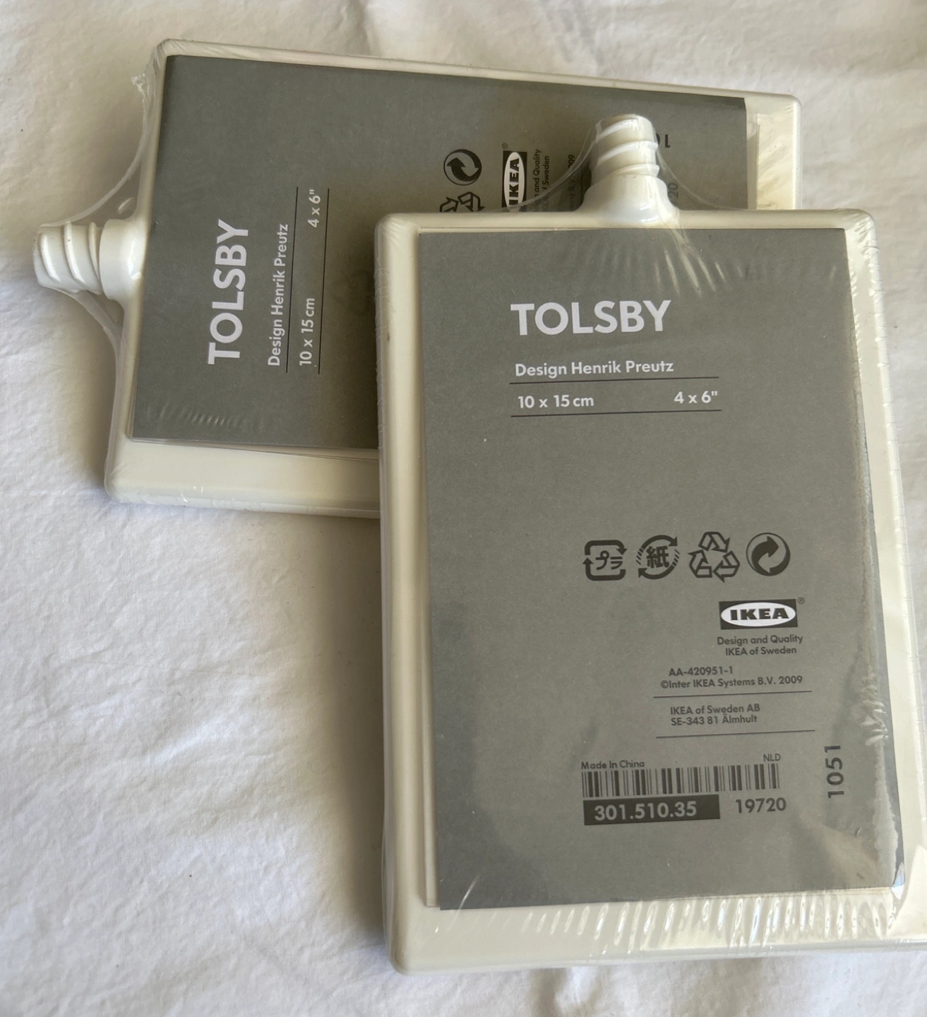IKEA Tolsbby white plastic picture frames in stands. New in package. Smoke/Pet free home. Cash and pick up only.