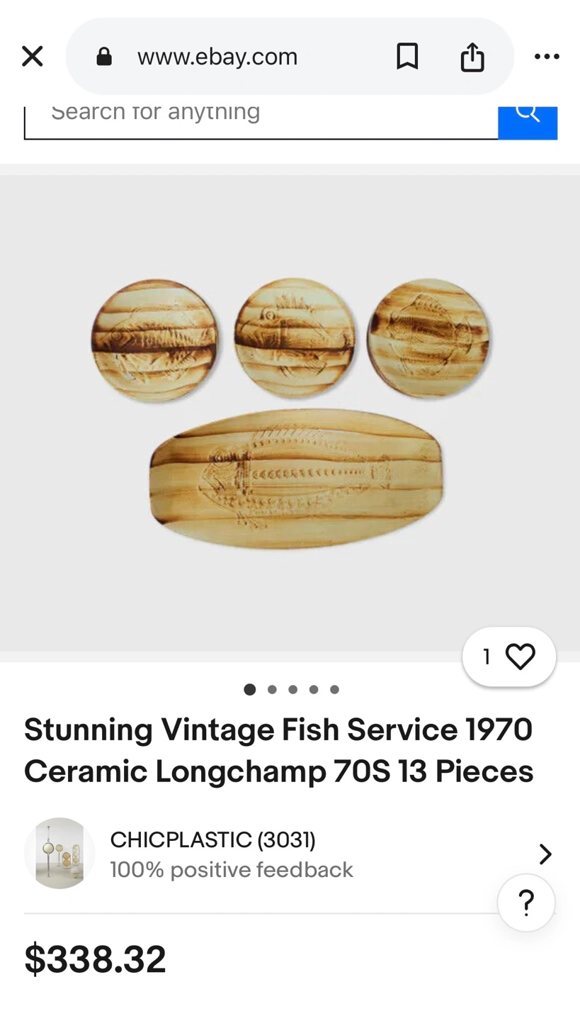 Plates stamped by French Robert PICAULT at Longchamp pottery from the 1970s.