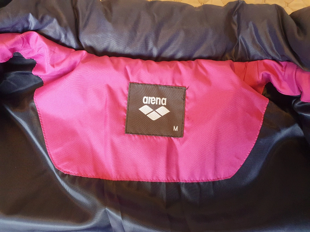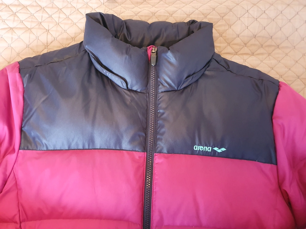 Women's size medium Arena puffer jacket. Pink and black colour block design. Full zip closure. Warm and comfortable. Excellent for colder weather.