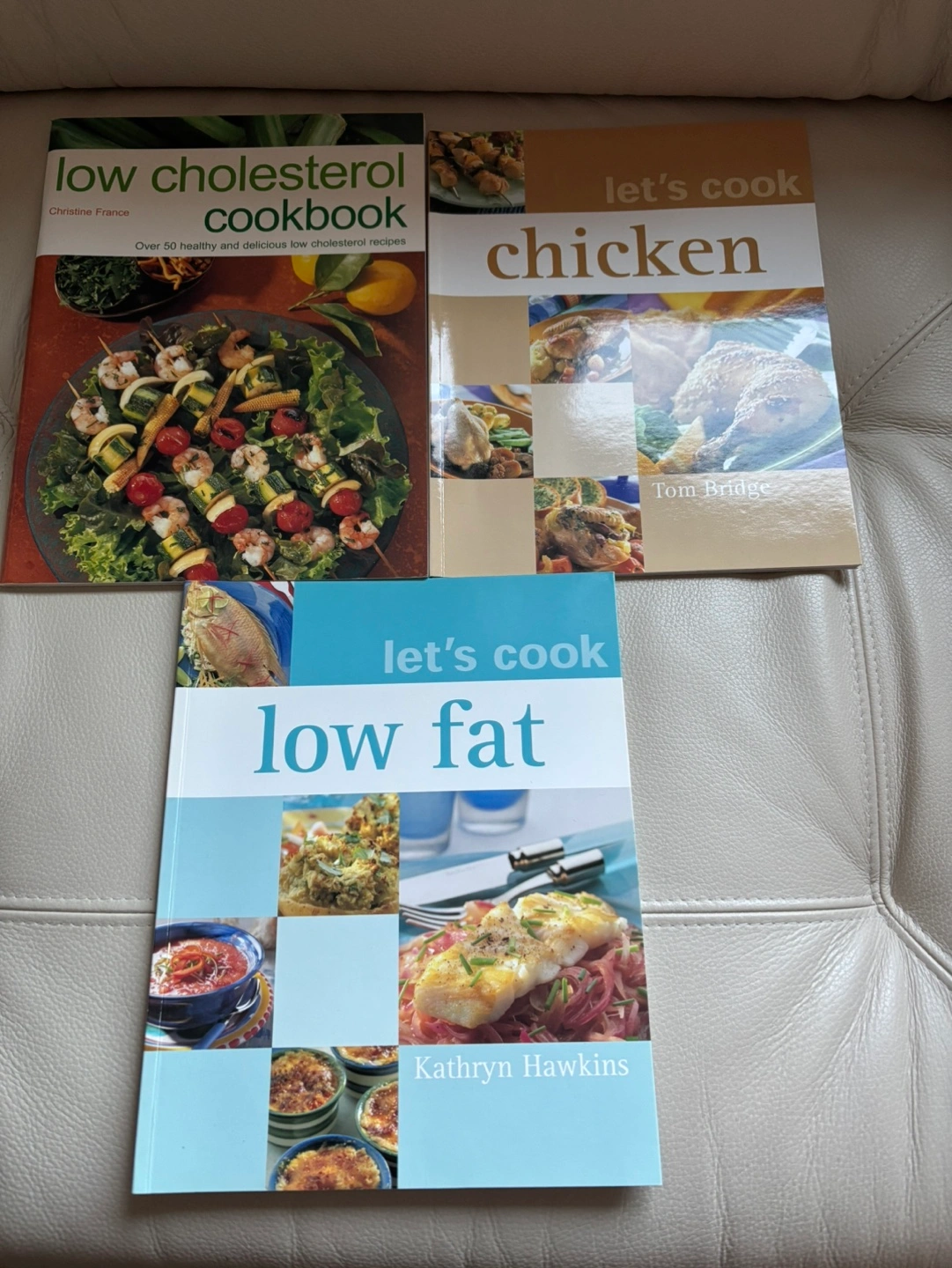 3 Cookbooks: Low Cholesterol, Cook Chicken, Let's Cook Low Fat