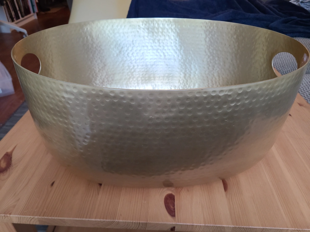 Large Gold Hammered Metal Basin with Handles