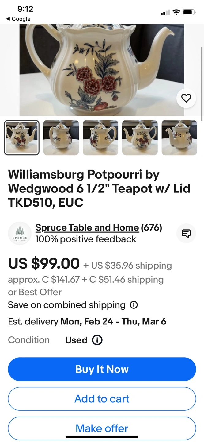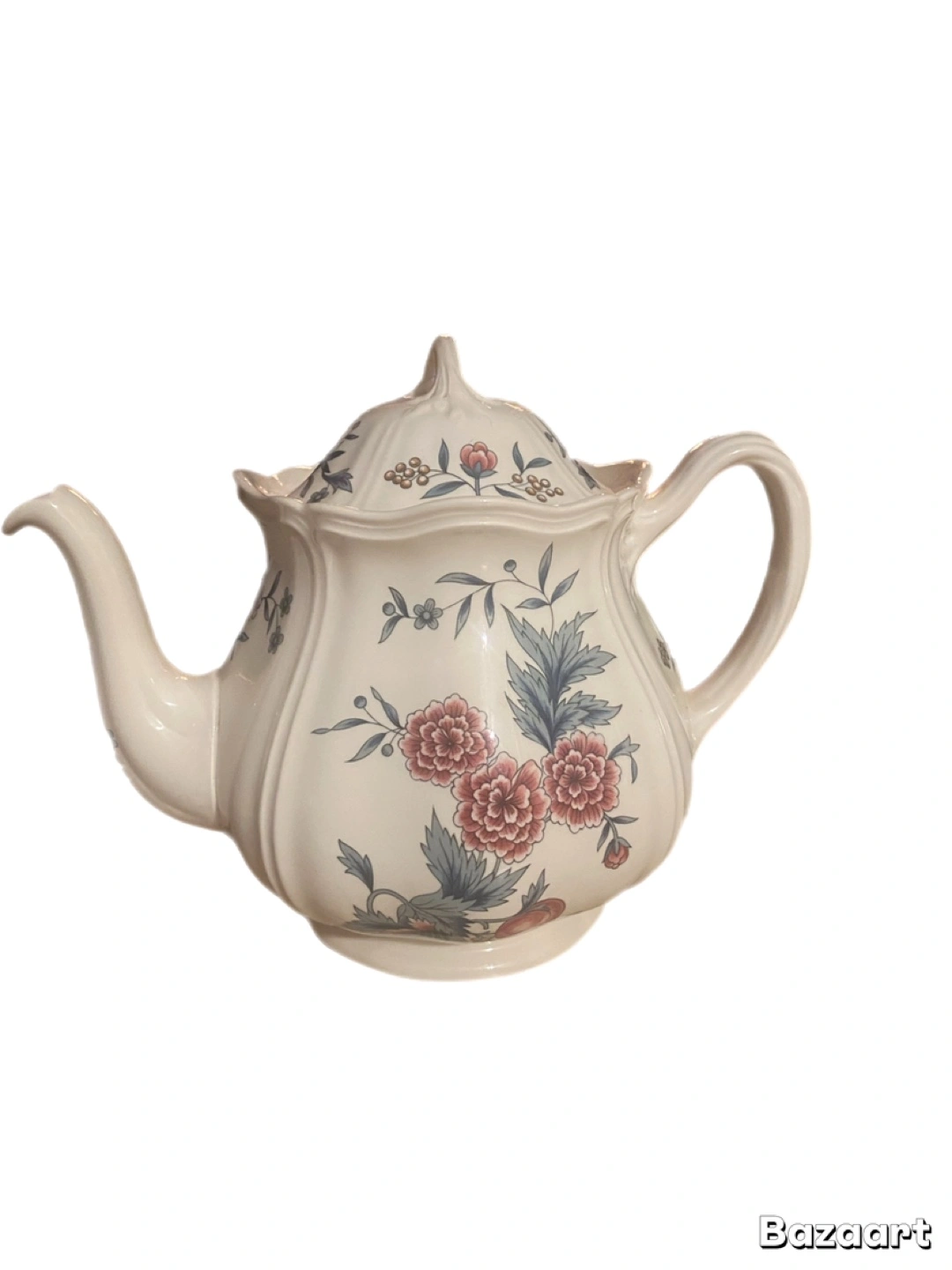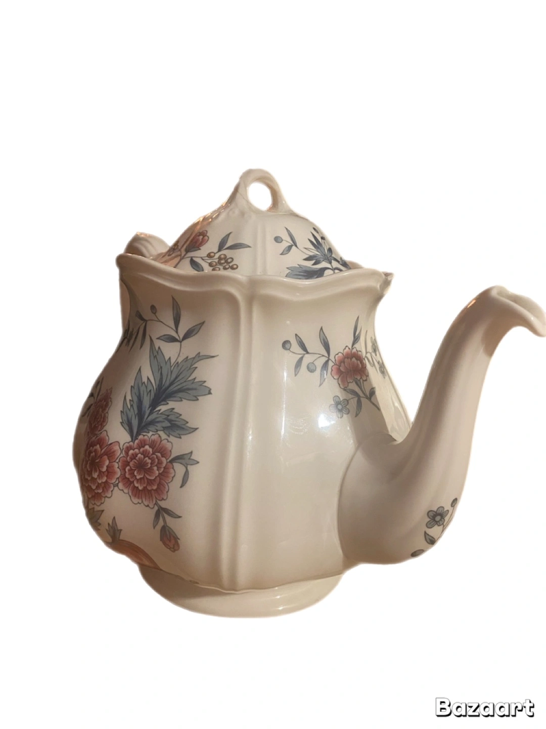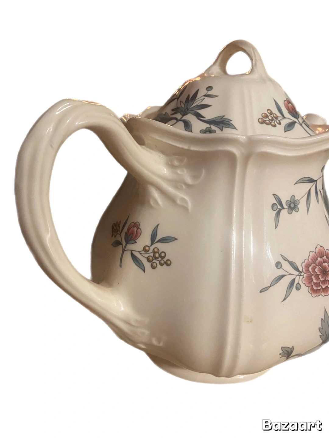 Vintage Wedgwood teapot. Cream coloured body with floral pattern. Made in England. Includes lid. 6 1/2 inches. Mint Condition