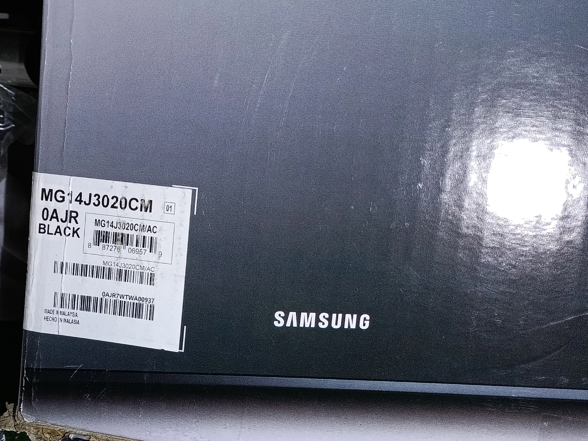 Model MG14J3020CM. Black Mirror colour. 1.4 cu.ft. 1500W High Power. Includes ceramic interior and eco mode. 21 7/8" x 12 5/16" x 18 1/16"