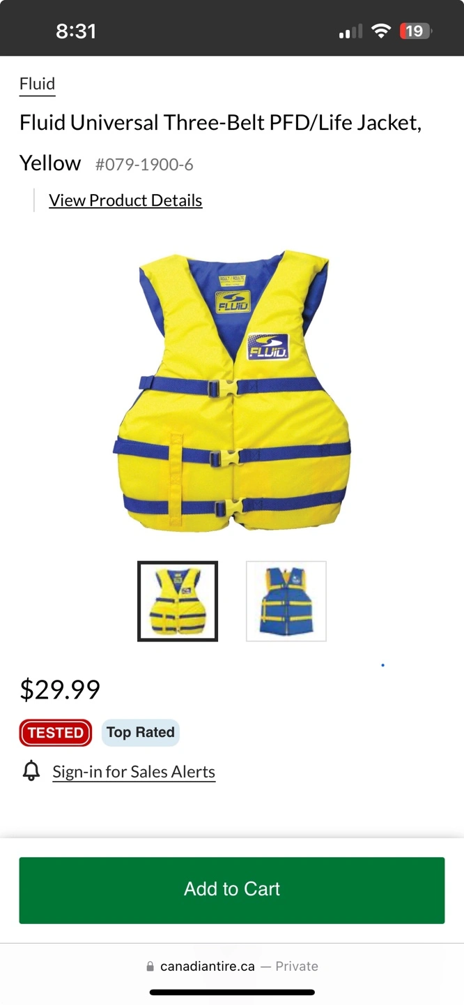 Two Fluid Universal Three-Belt PFD Life Jackets - Yellow