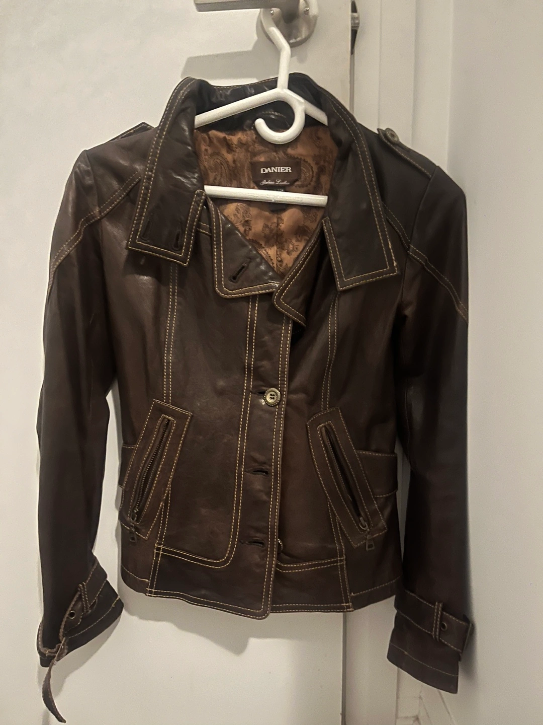 Danier Brown Leather Jacket with Contrast Stitching