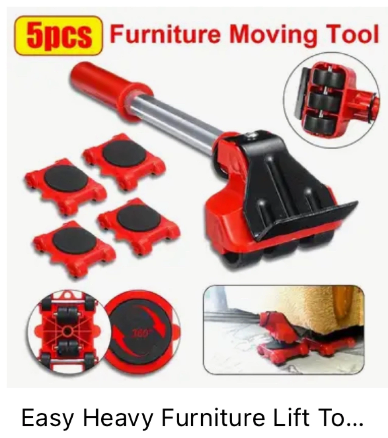 Heavy-duty furniture lifter and movers. Set includes one lever and four sliders. Easy to use, move heavy furniture effortlessly. Great for moving day or rearranging furniture.