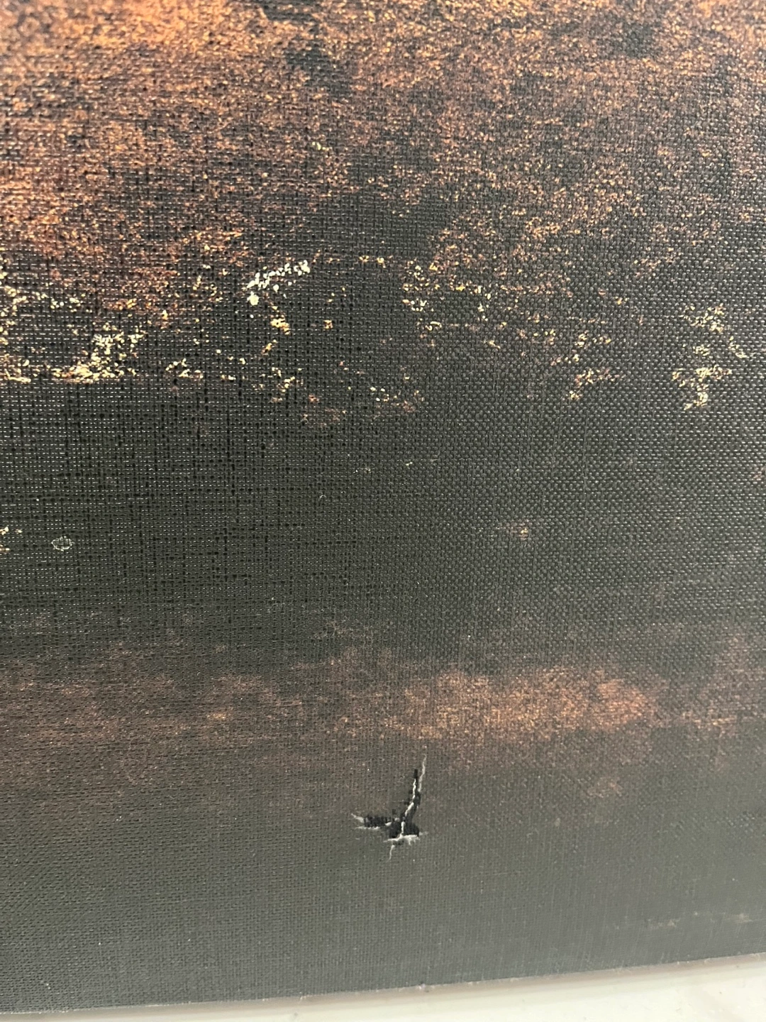 Large canvas print. Brown and orange tones. Depicts trees on a horizon. Minor damage- bottom right( Not very noticeable) 30" x 40"