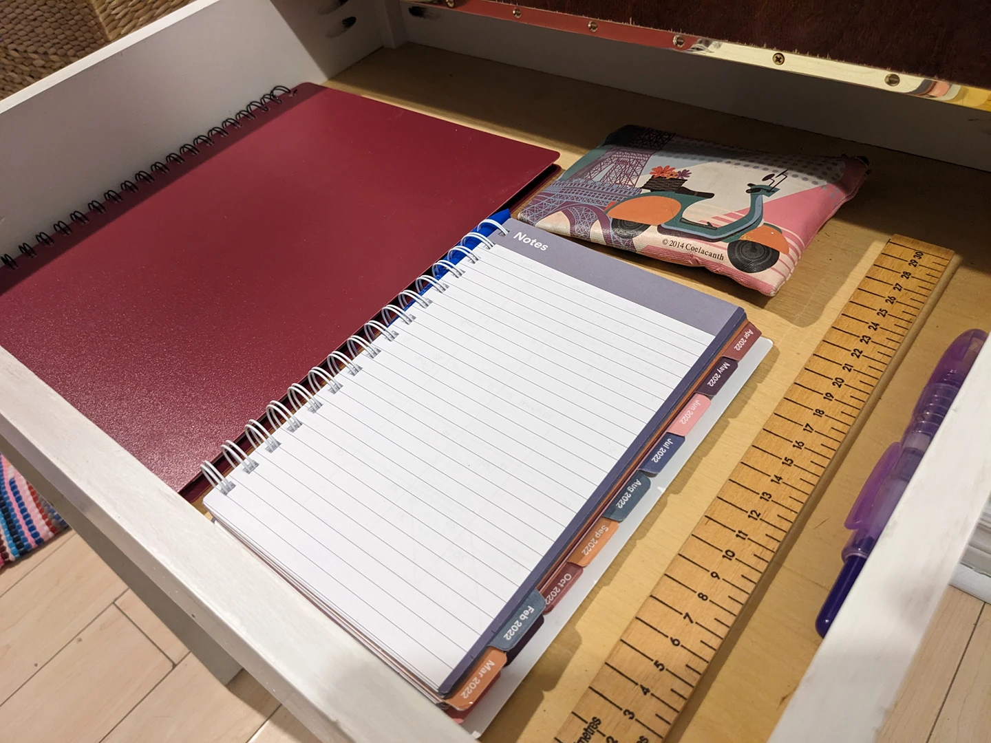 Wooden desk top can swing open and accomodate notebooks, laptops and more inside. Tabletop has a nice reddish colour