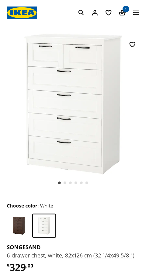 IKEA SONGESAND 6-Drawer Chest Dresser