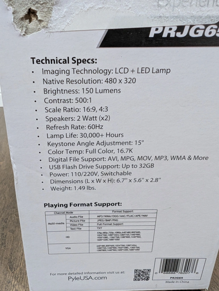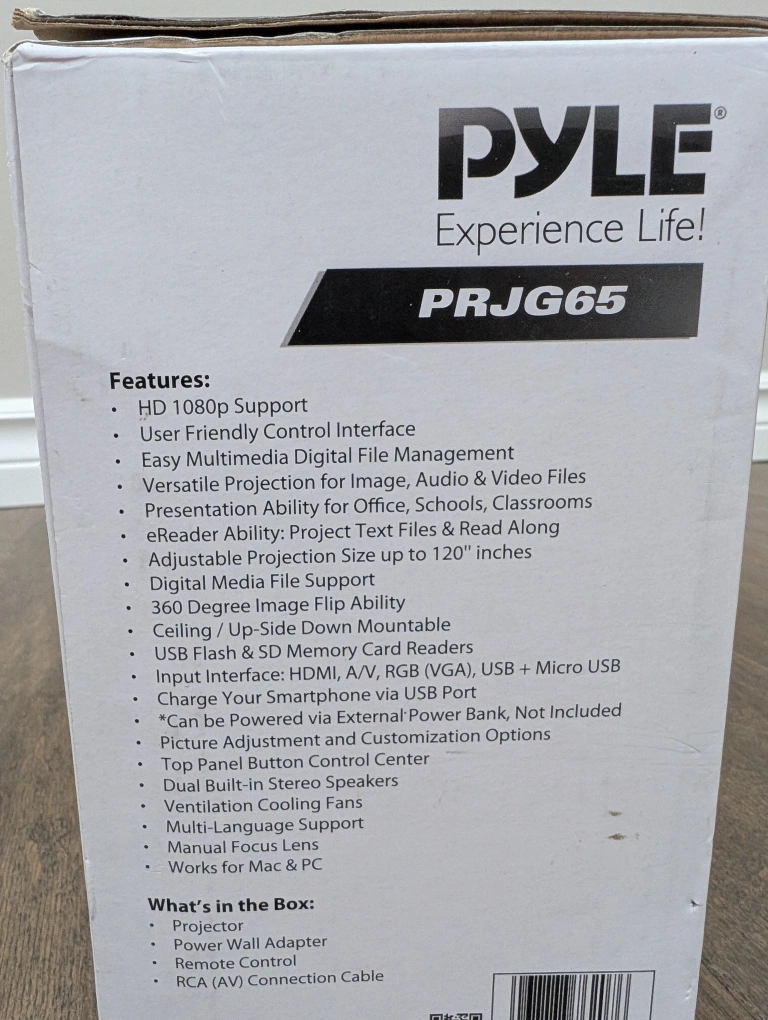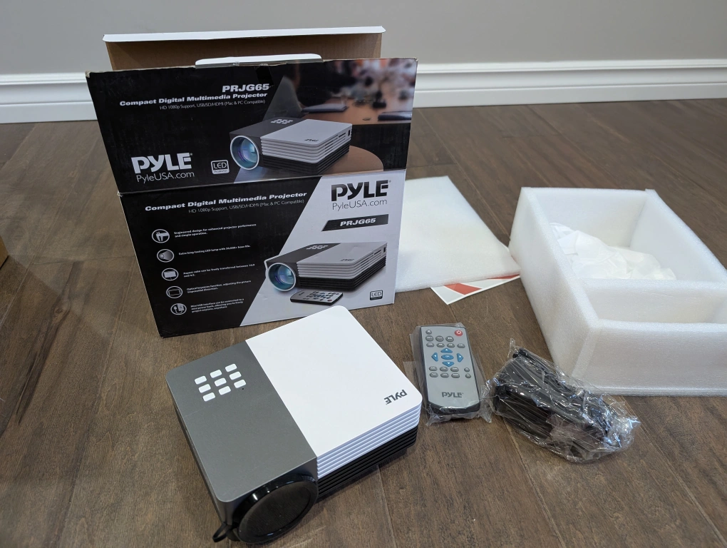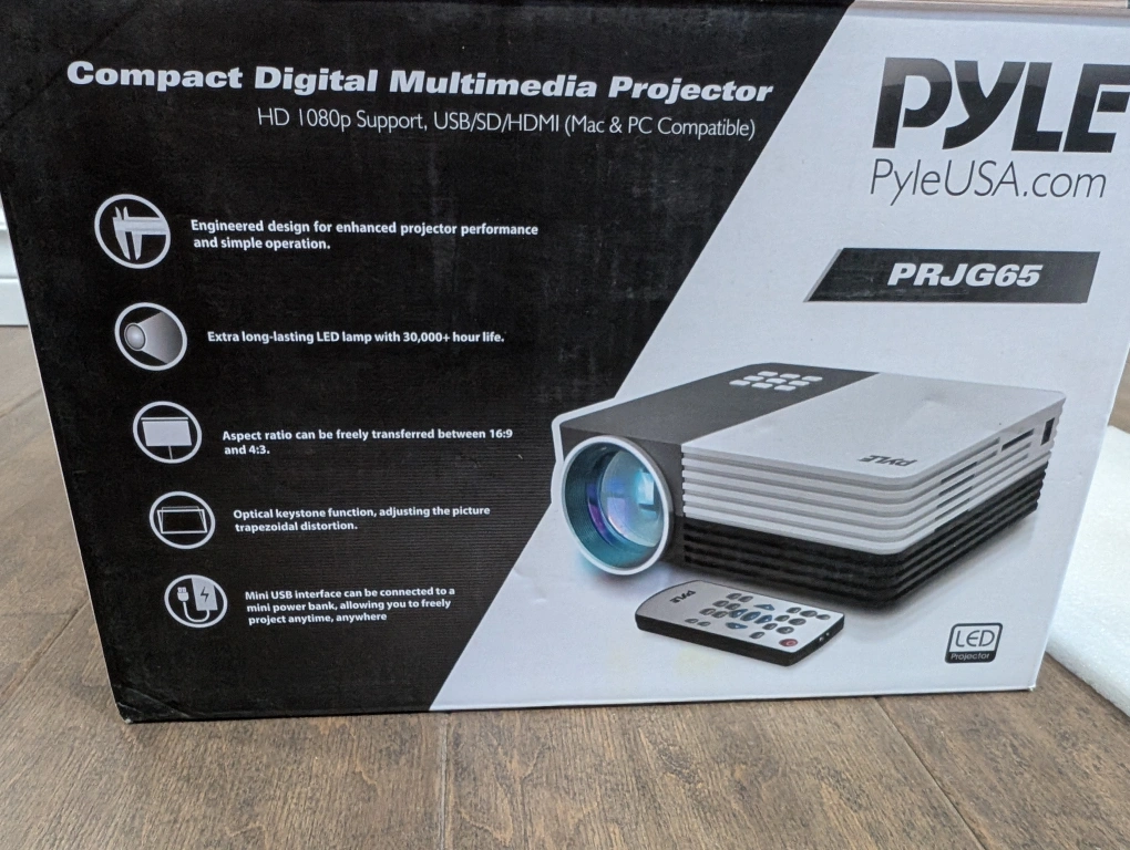 New Pyle PRJG65 projector. Compact design. HD 1080p support. USB/SD/HDMI inputs. Mac & PC compatible. Includes remote and power adapter. Long-lasting LED lamp. $65 firm.