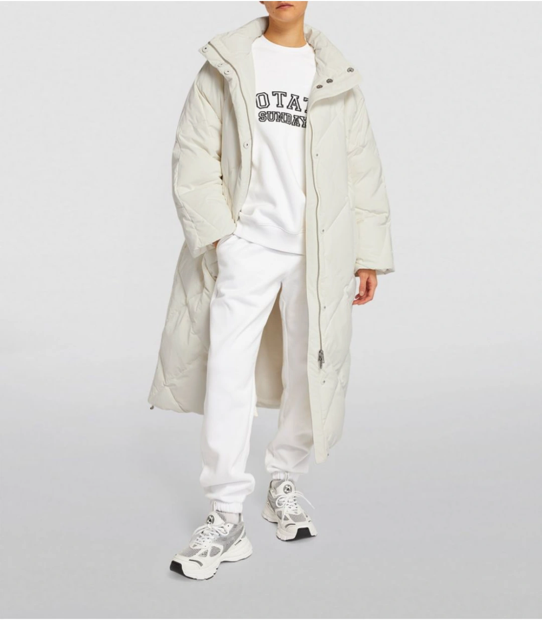 This oversized coat is designed with a wide high-neck collar and a hidden two-way front zip closure with snap buttons. Crafted in a diamond-quilted shell with recycled down filling, the long coat is finished with thick padding, buttoned side pockets, a drawcord hemline and longline silhouette.
