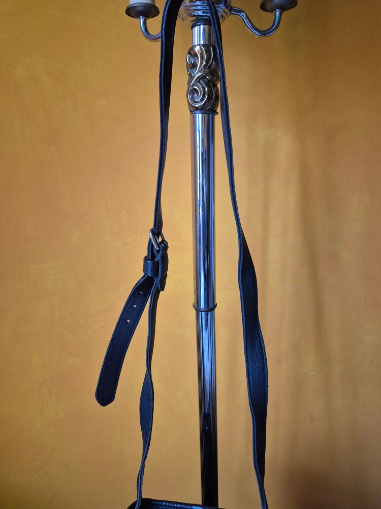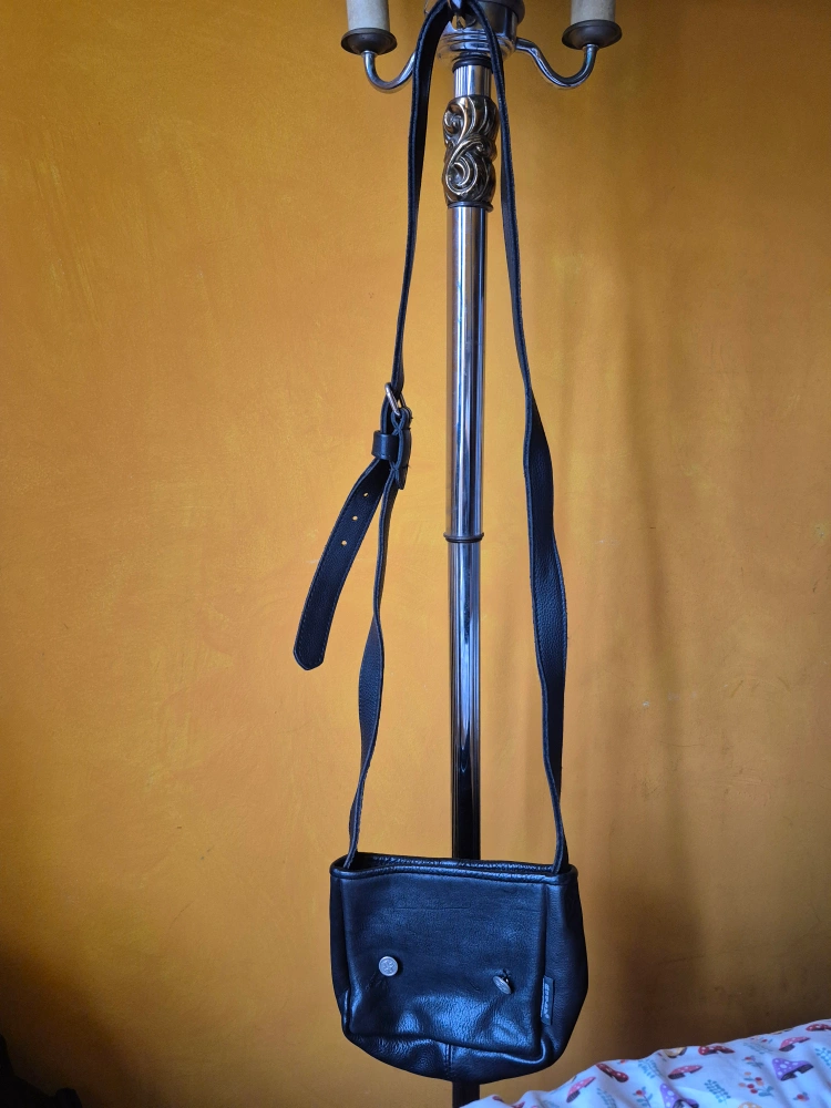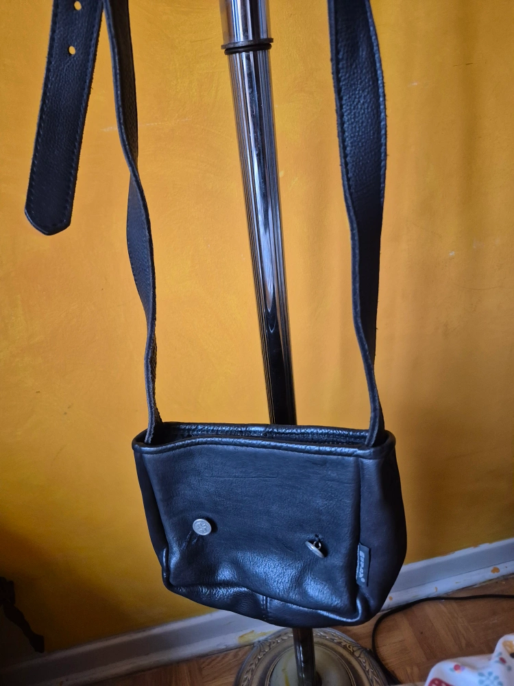 Small black leather crossbody bag. Adjustable strap. Zipper closure. Pre-owned.