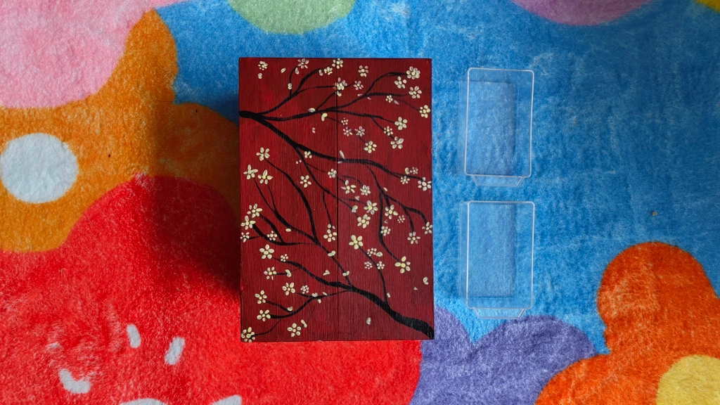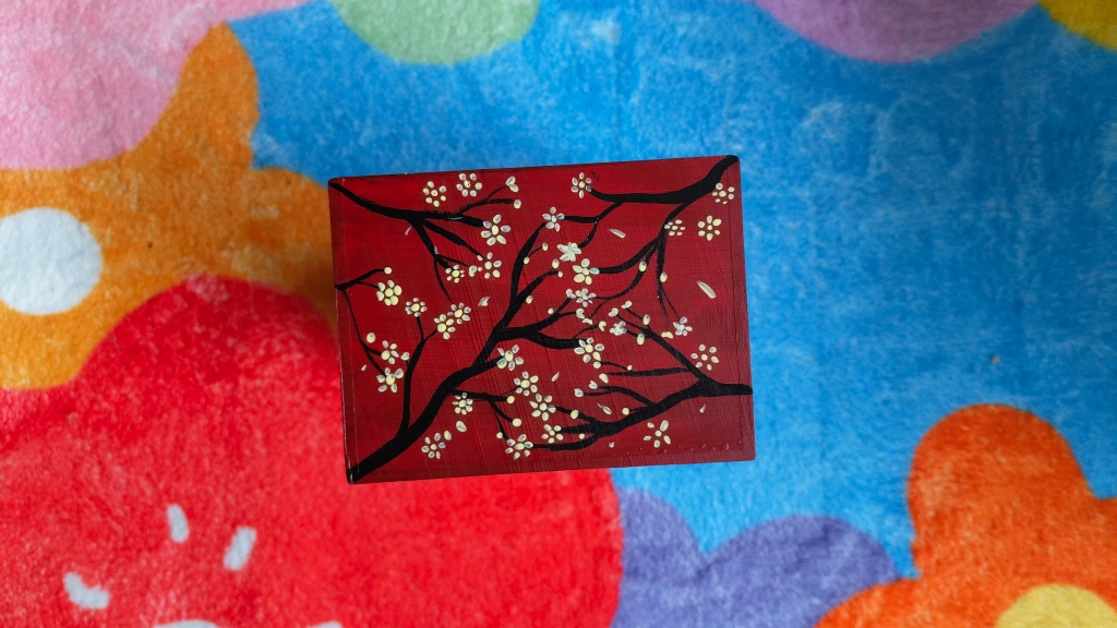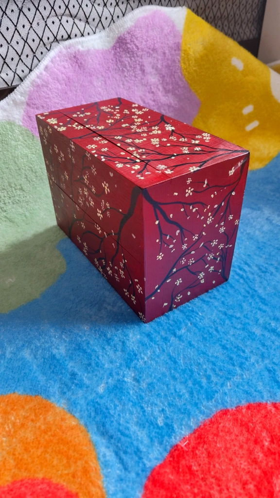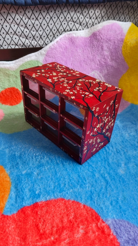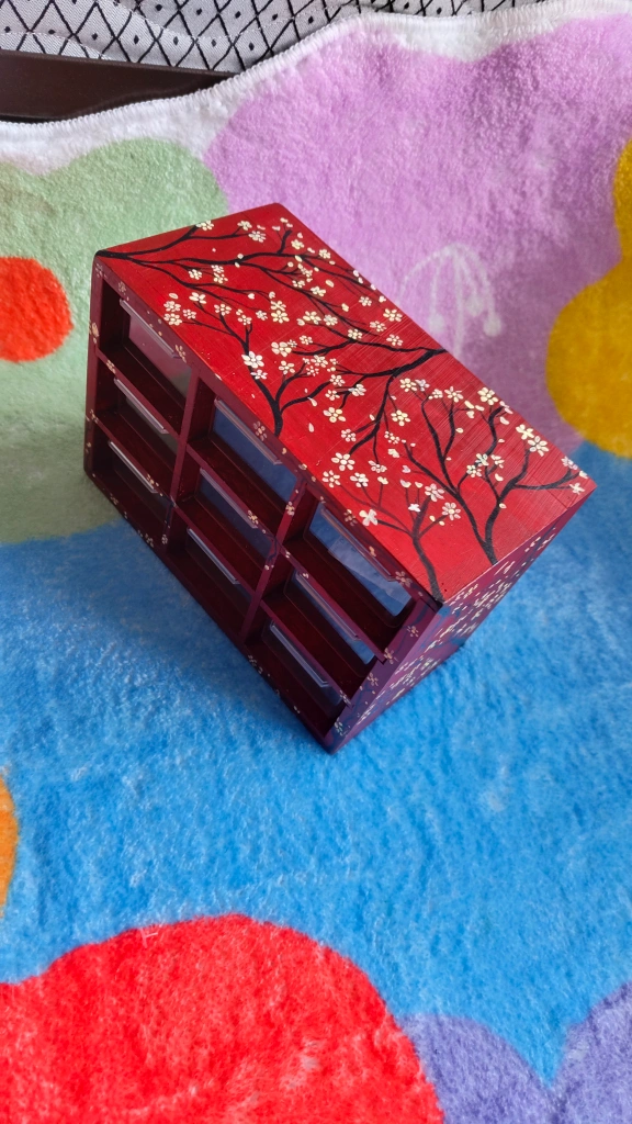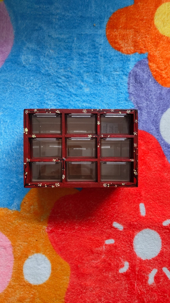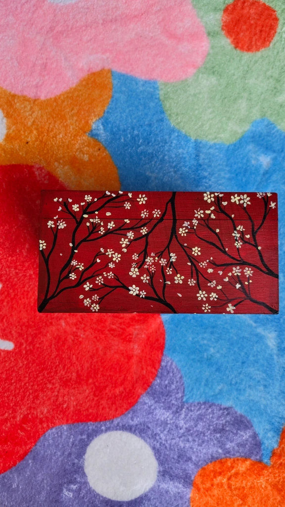 Unique wooden box, hand-painted with a cherry blossom design. Features eight small compartments, perfect for organizing small items jewellery, stationery, etc. Red finish, removable trays.✨ ‼️Get a FREE canvas decor with this purchase!🧡 pickup and cash only