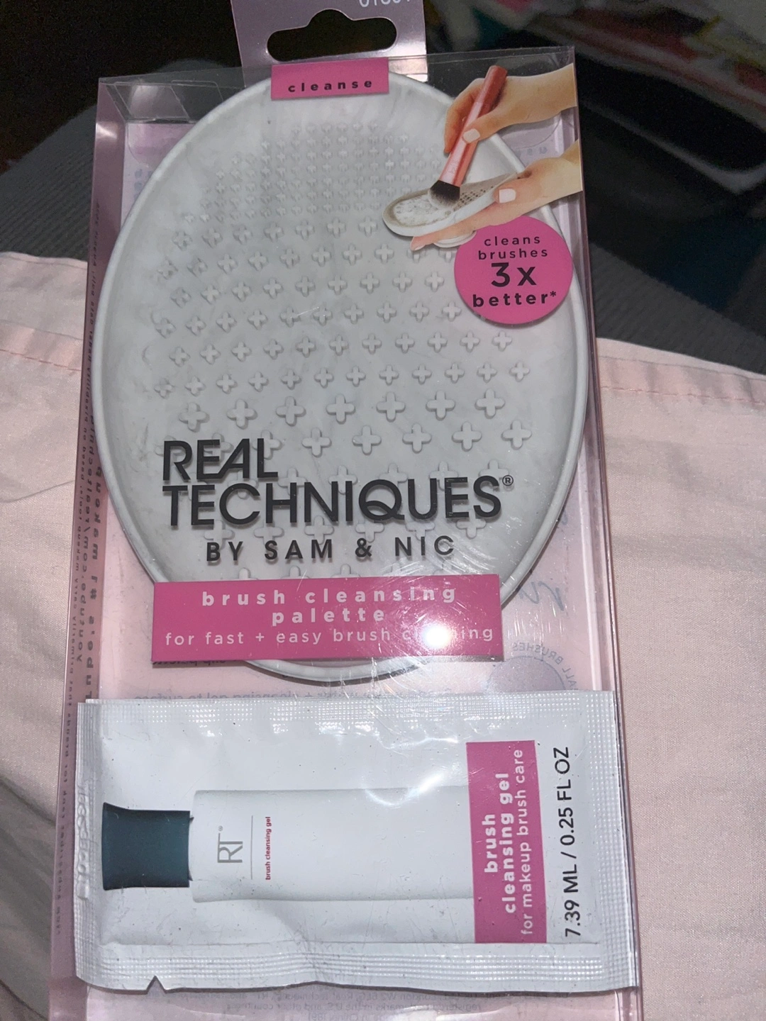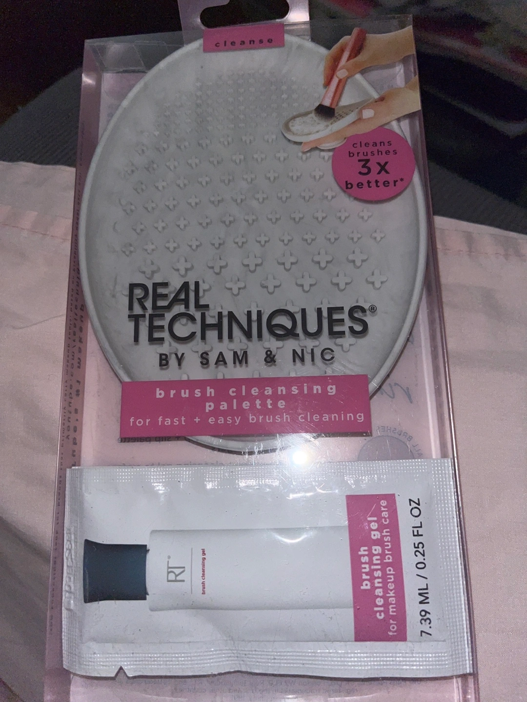 New Real Techniques brush cleansing palette. Includes silicone cleaning palette and brush cleansing gel. Fast and easy brush cleaning. Perfect for makeup brush care.